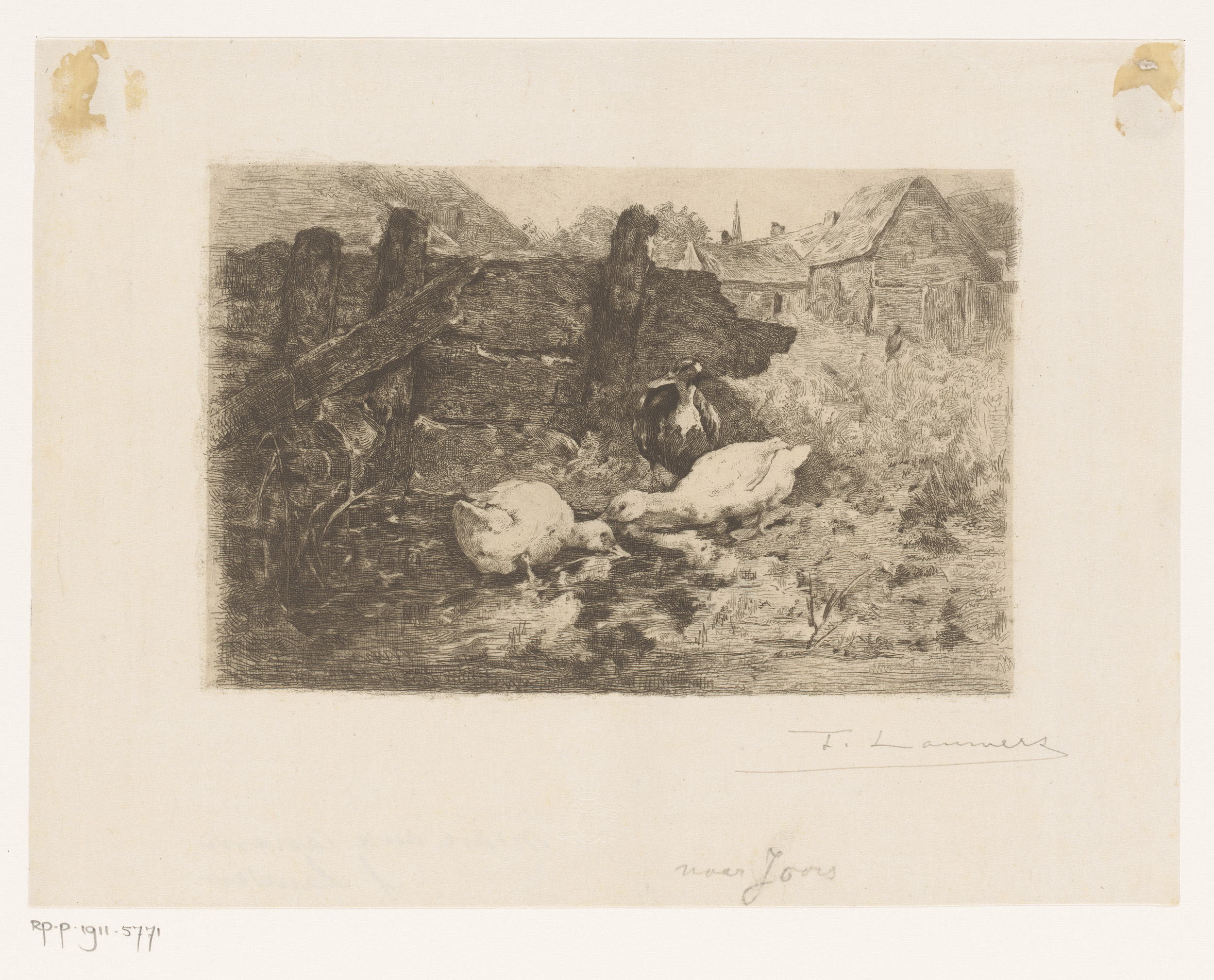 Eenden op het erf van een boerderij