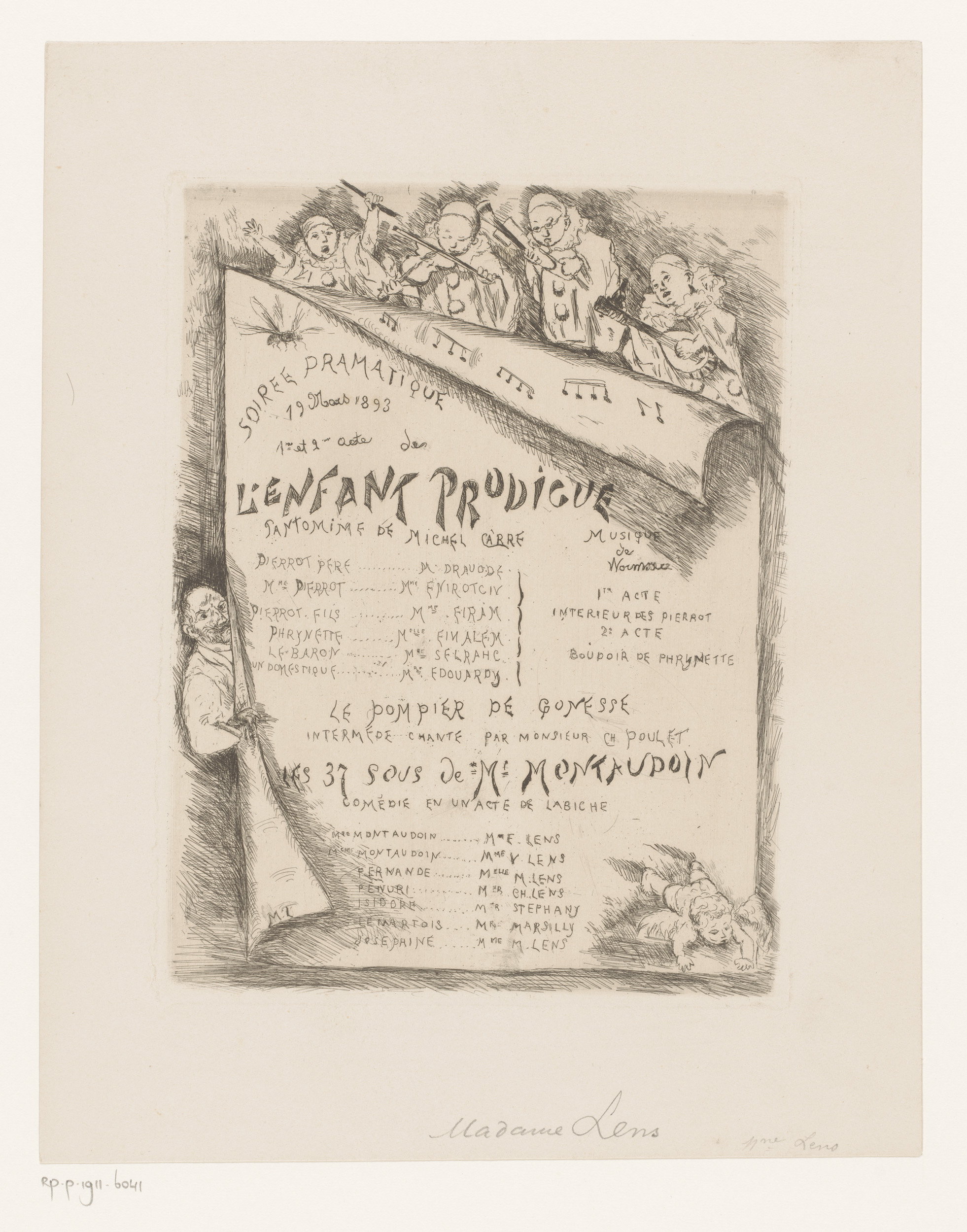 Aankondiging en programma voor een theateravond
