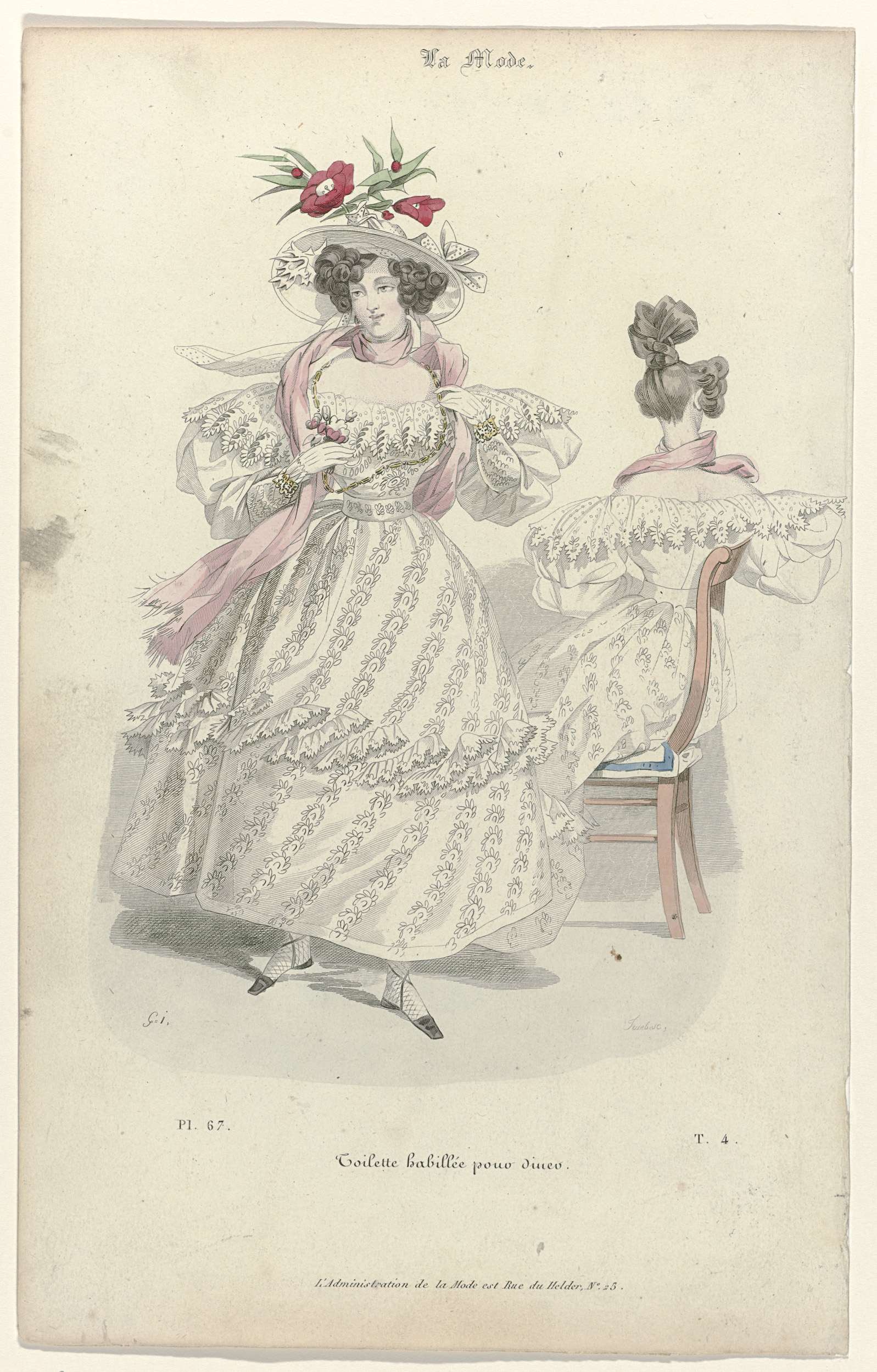 La Mode, 1830, Pl. 67, T.4 :Toilette habillée pour d...