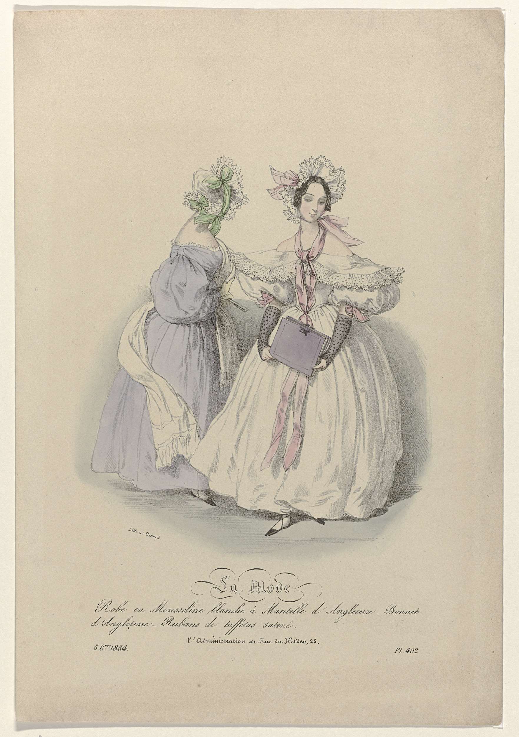 La Mode, 5 octobre 1834, Pl. 402, Robe en Mousseline...