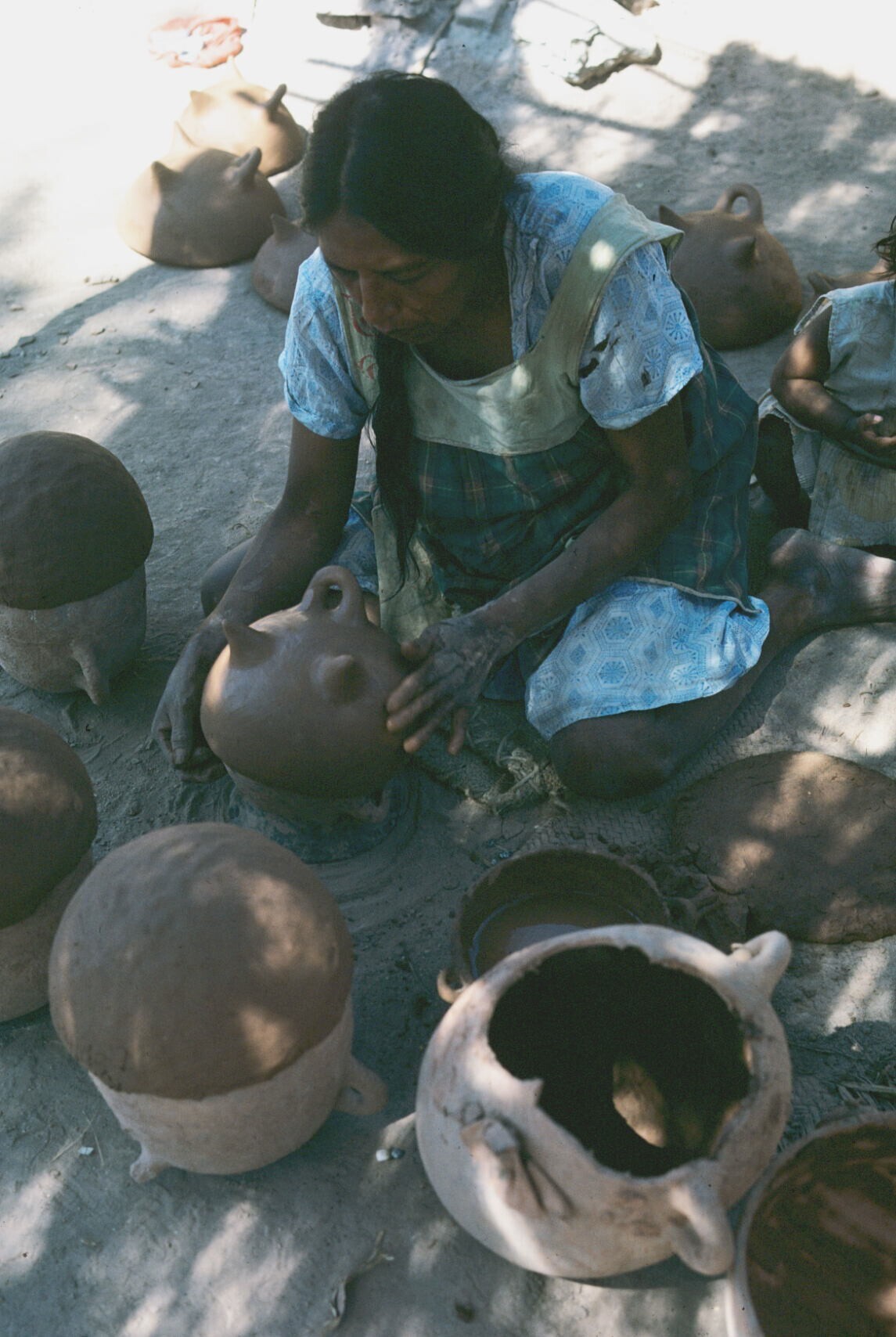 gedecoreerde molcajetes (vijzels) en ander aardewerk