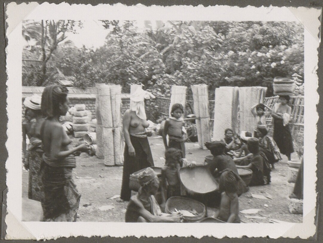 Verkoop van manden op de markt in Selat
