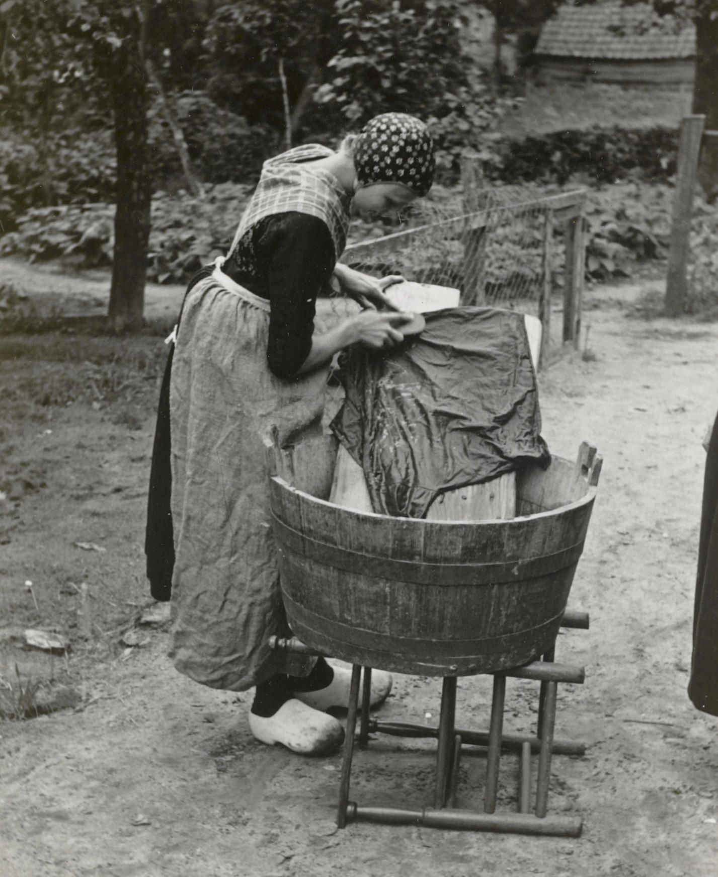 Hendrikje Kooiker bij een wastobbe, Staphorst, 1950 ...