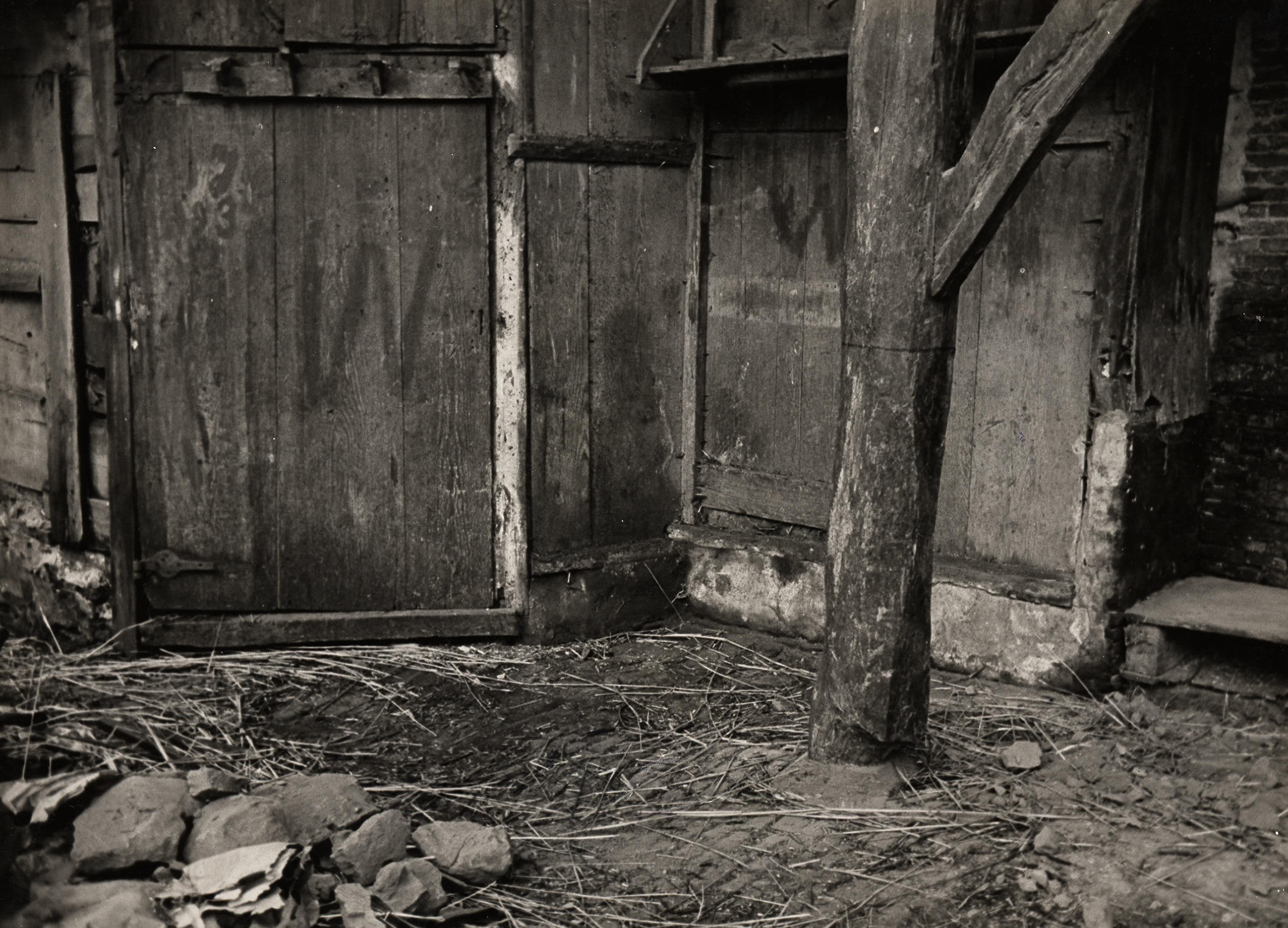 Afbraak van boerderij, Staphorst, 1950 (zwart-wit foto)