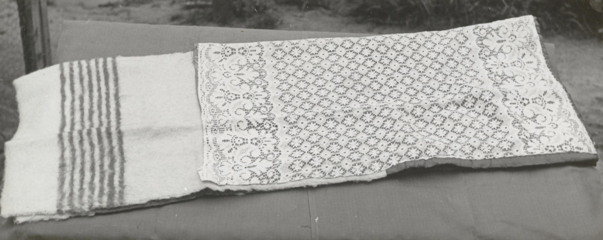 Doopdeken uit Staphorst, 1950 (zwart-wit foto)