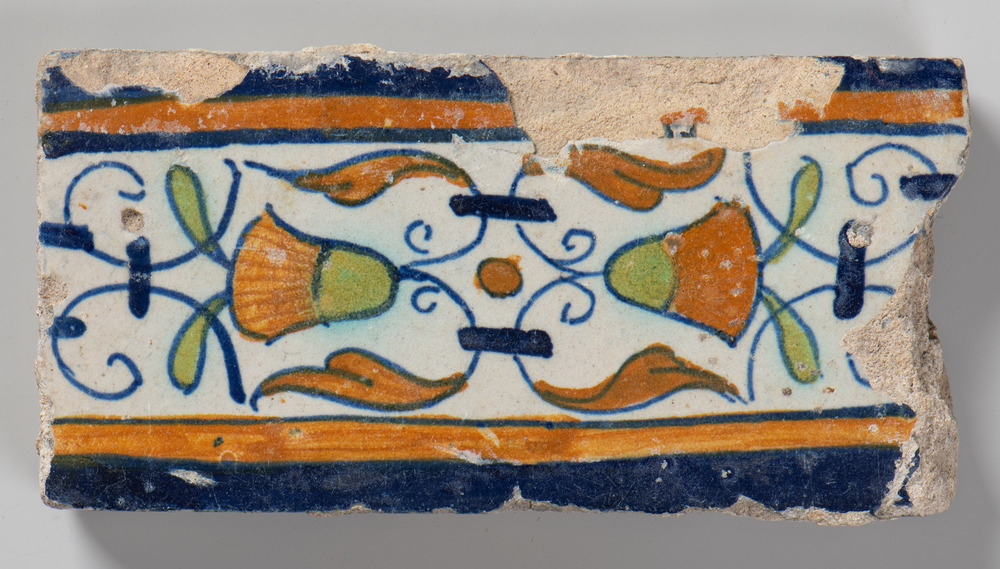 tegel van aardewerk met tinglazuur, voorstellende: t...