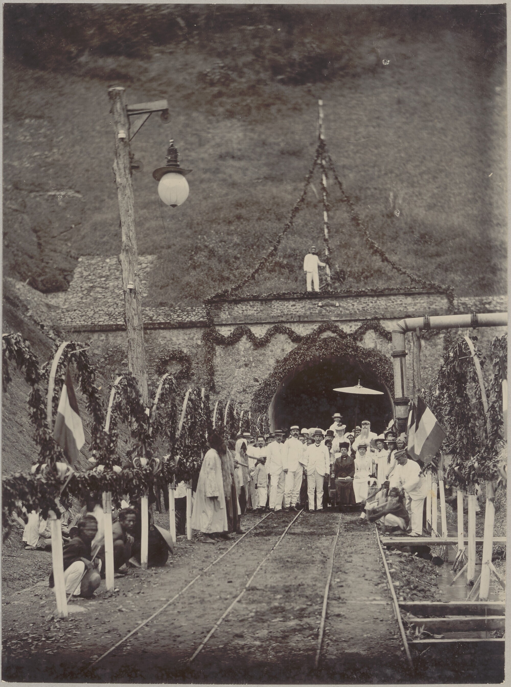 Group portrait at the opening of the railway subway ...