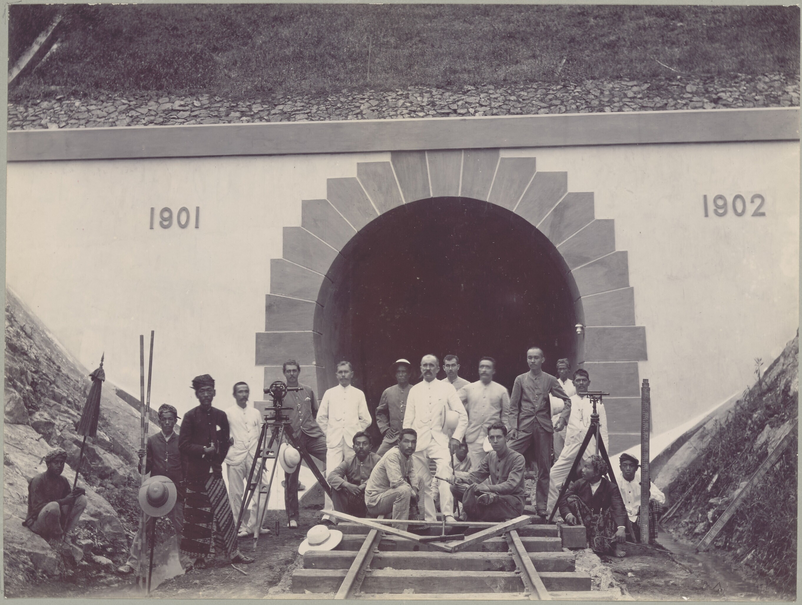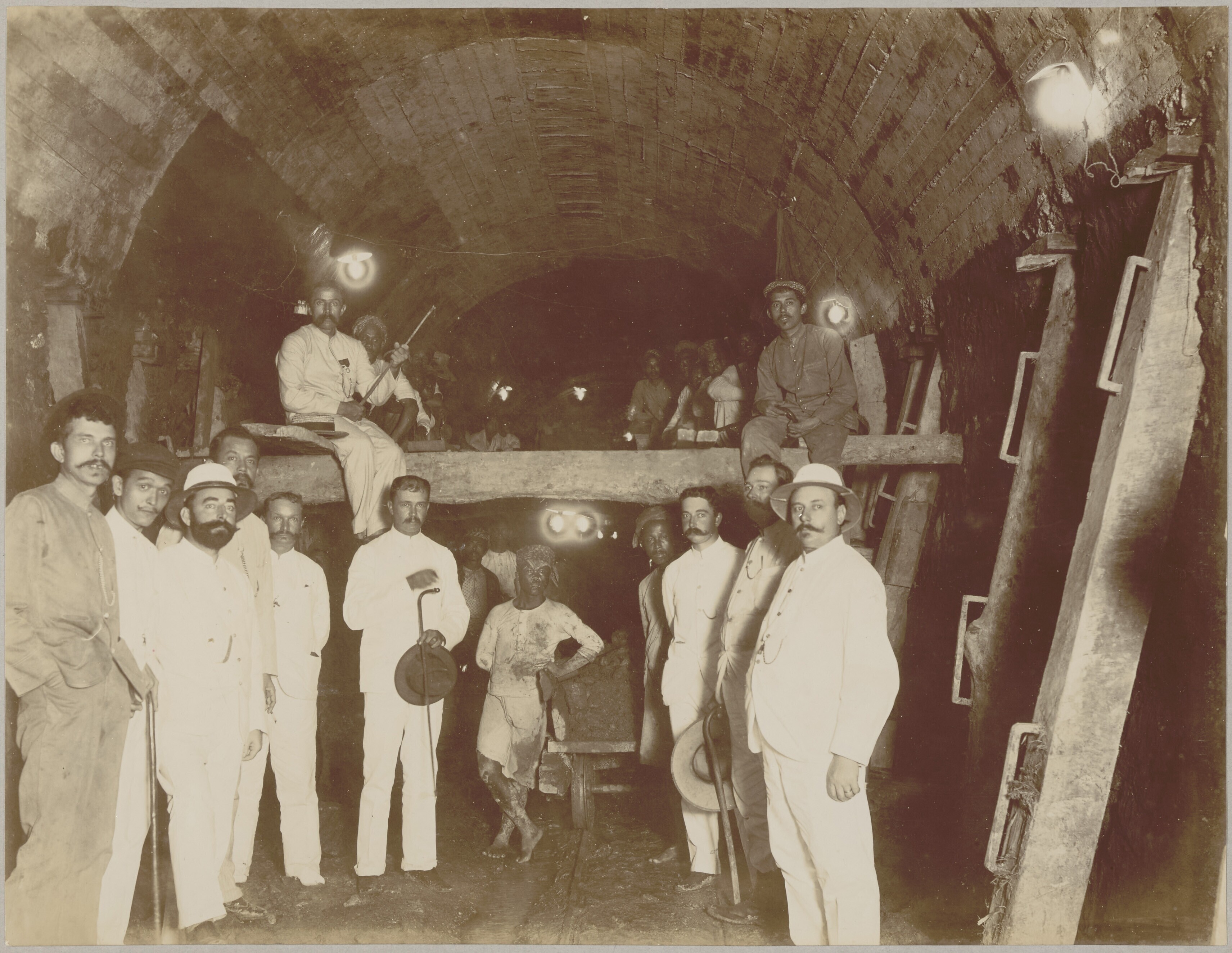 Group portrait of the builders of a railway subway