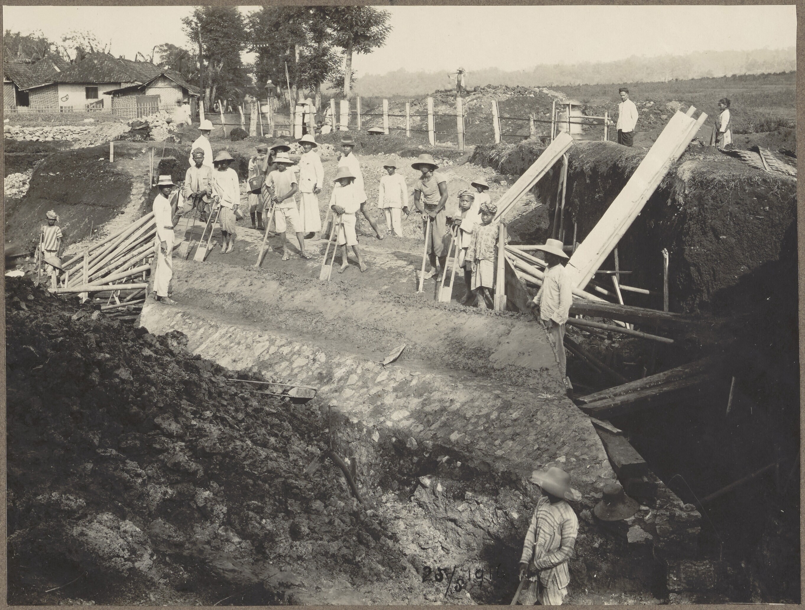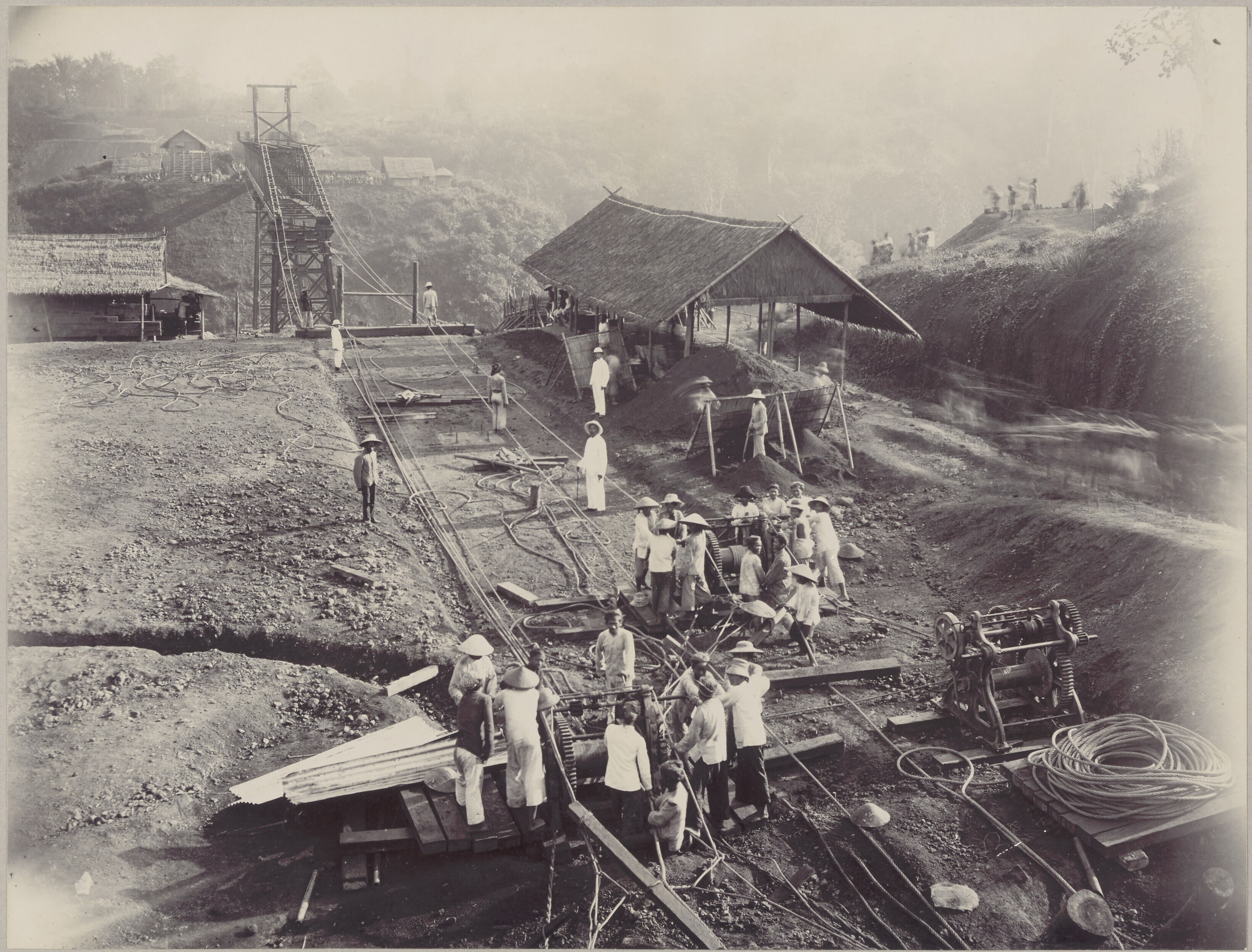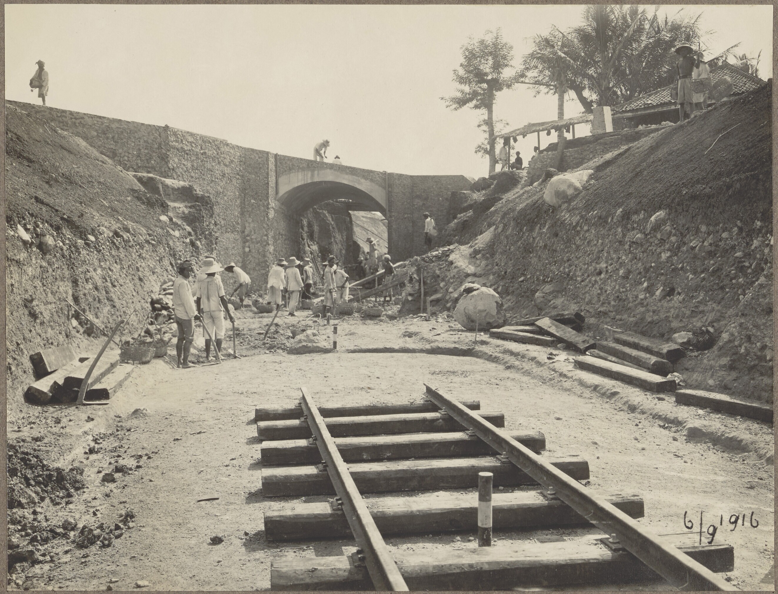 Aanleg van de spoorweg bij Djatinangor