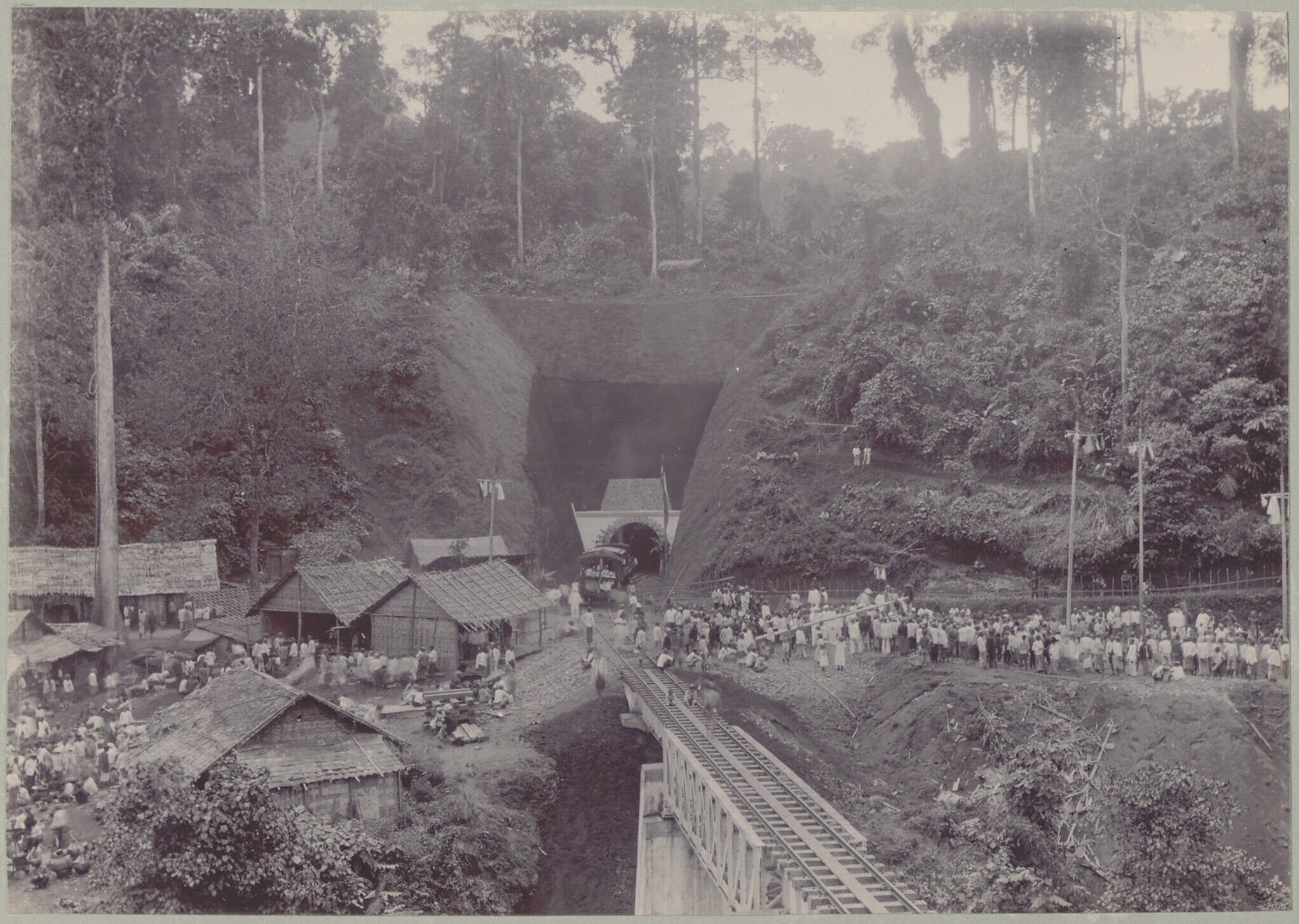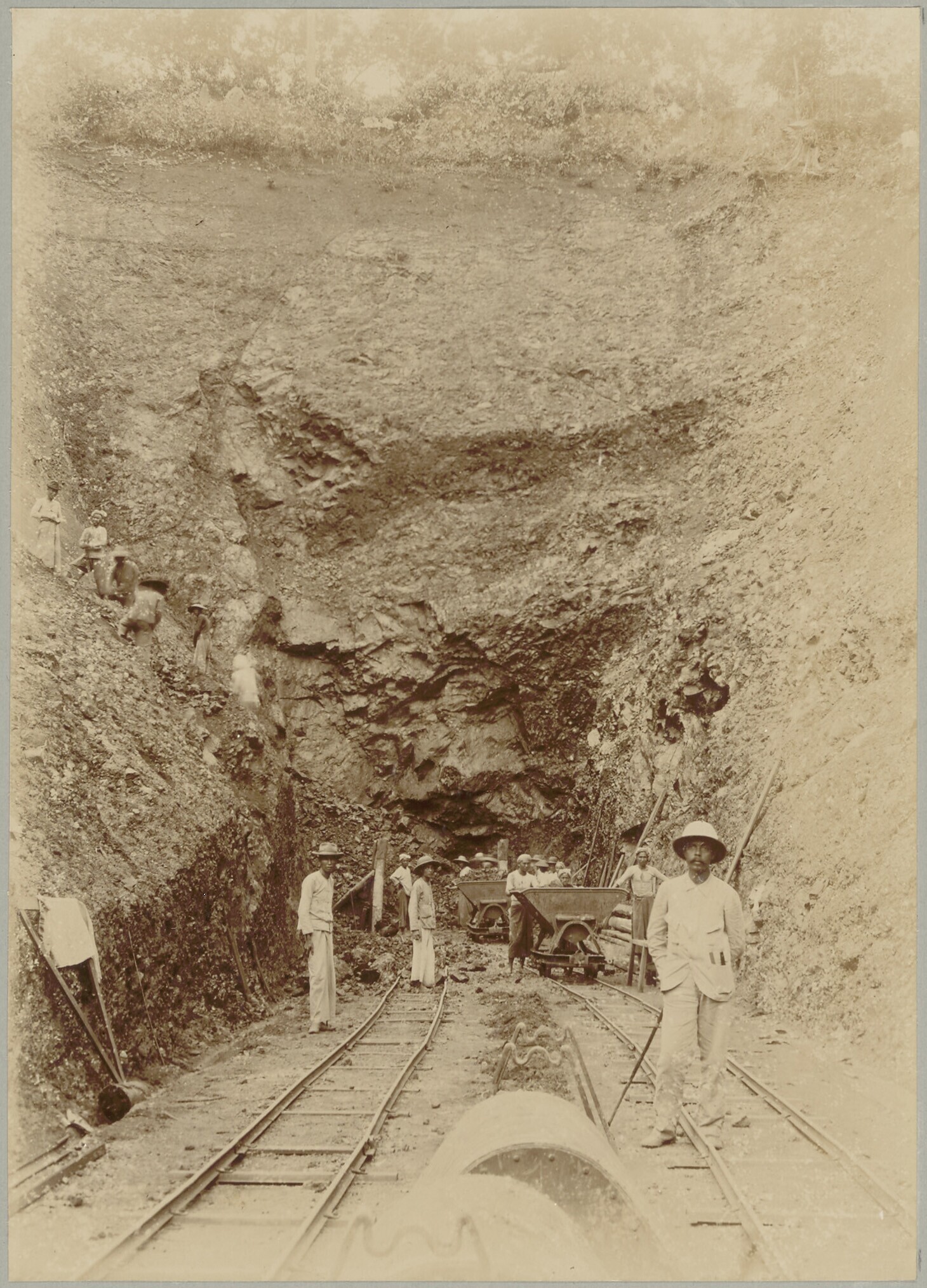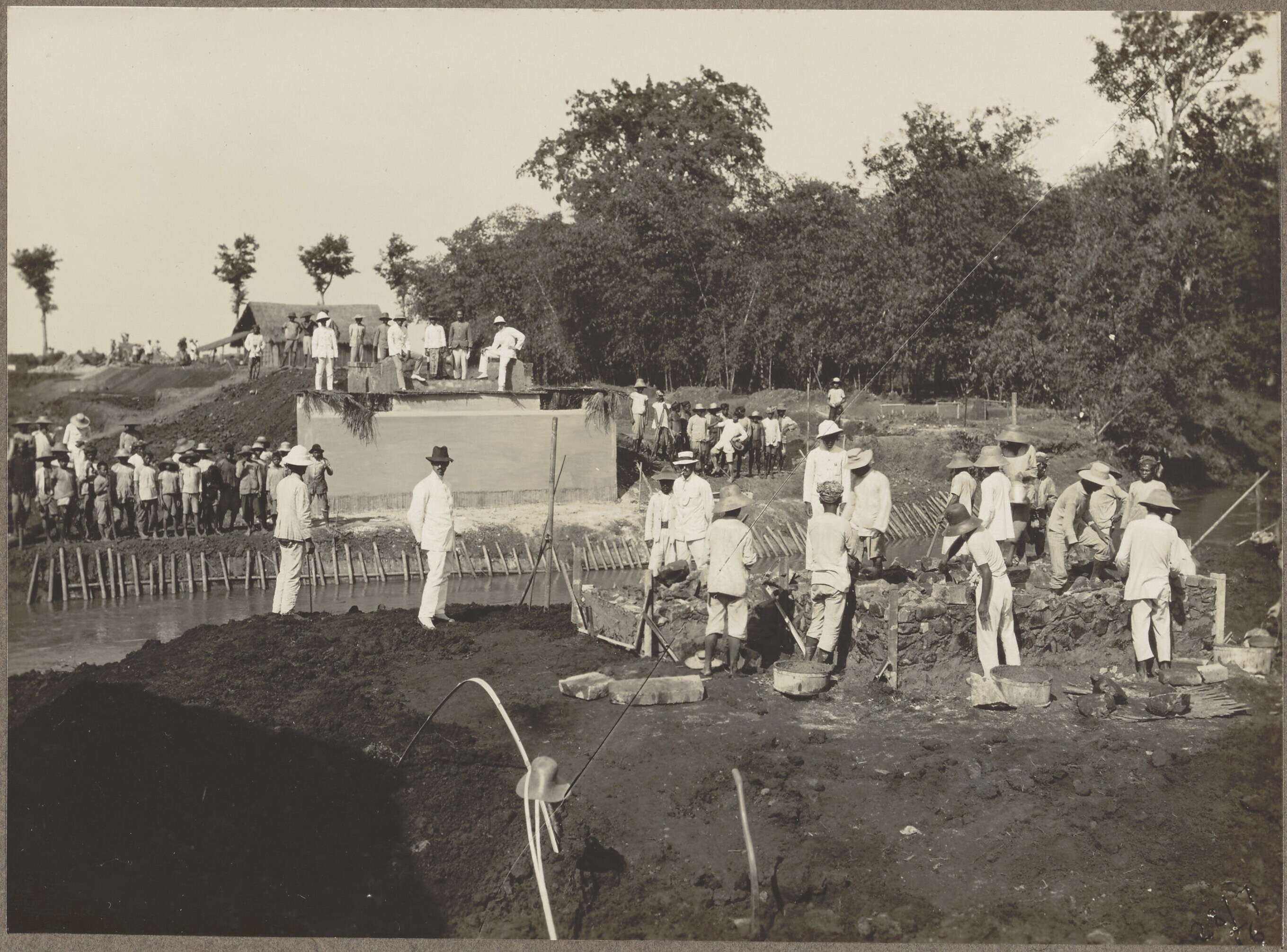 Aanleg van de spoorweg bij Djatinangor