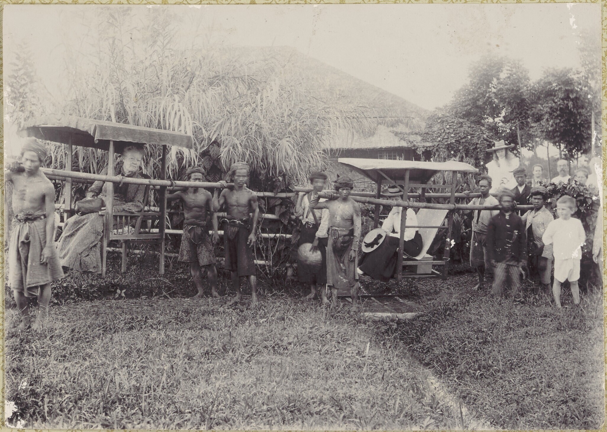 Europese vrouwen in draagstoelen