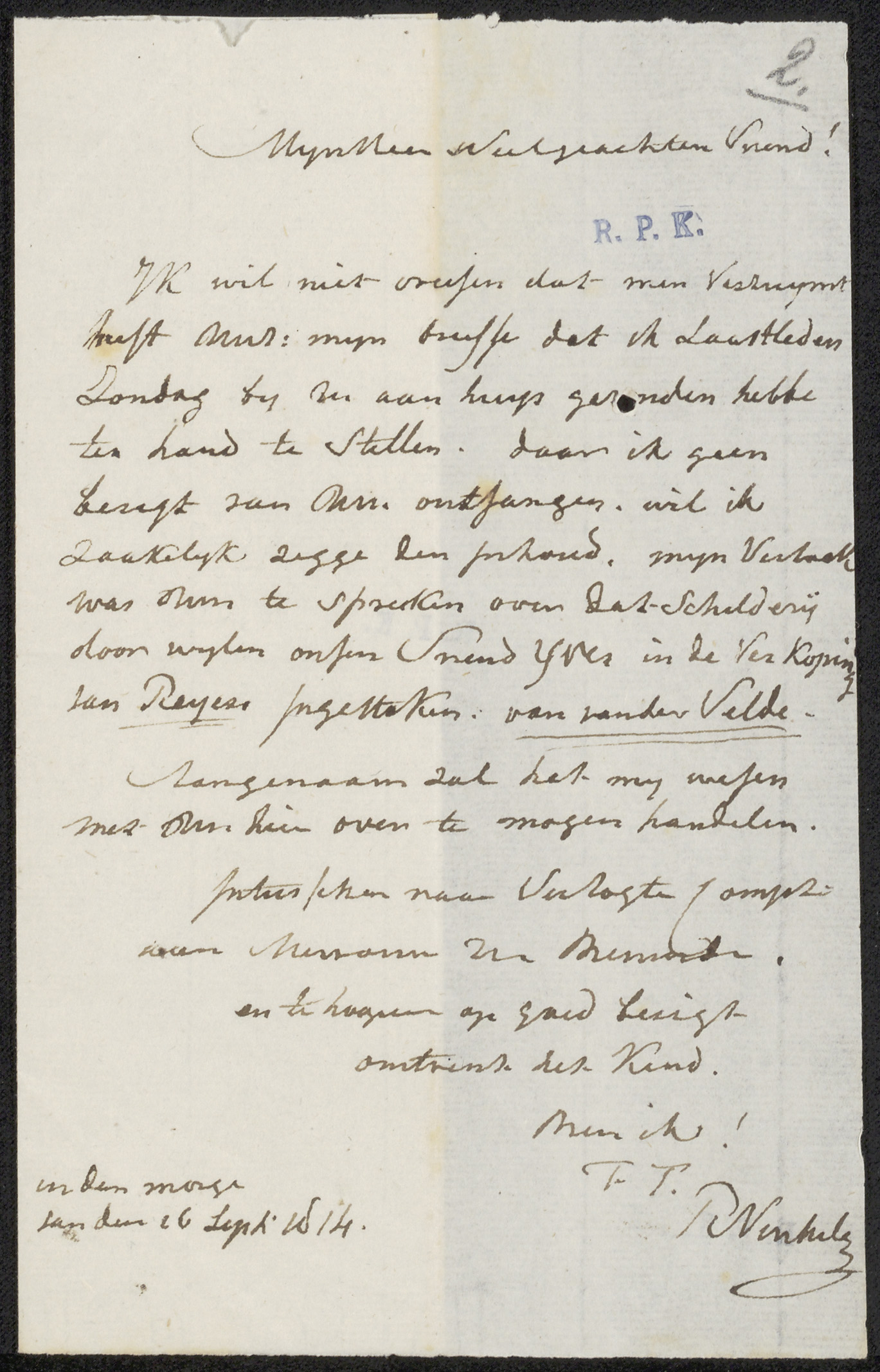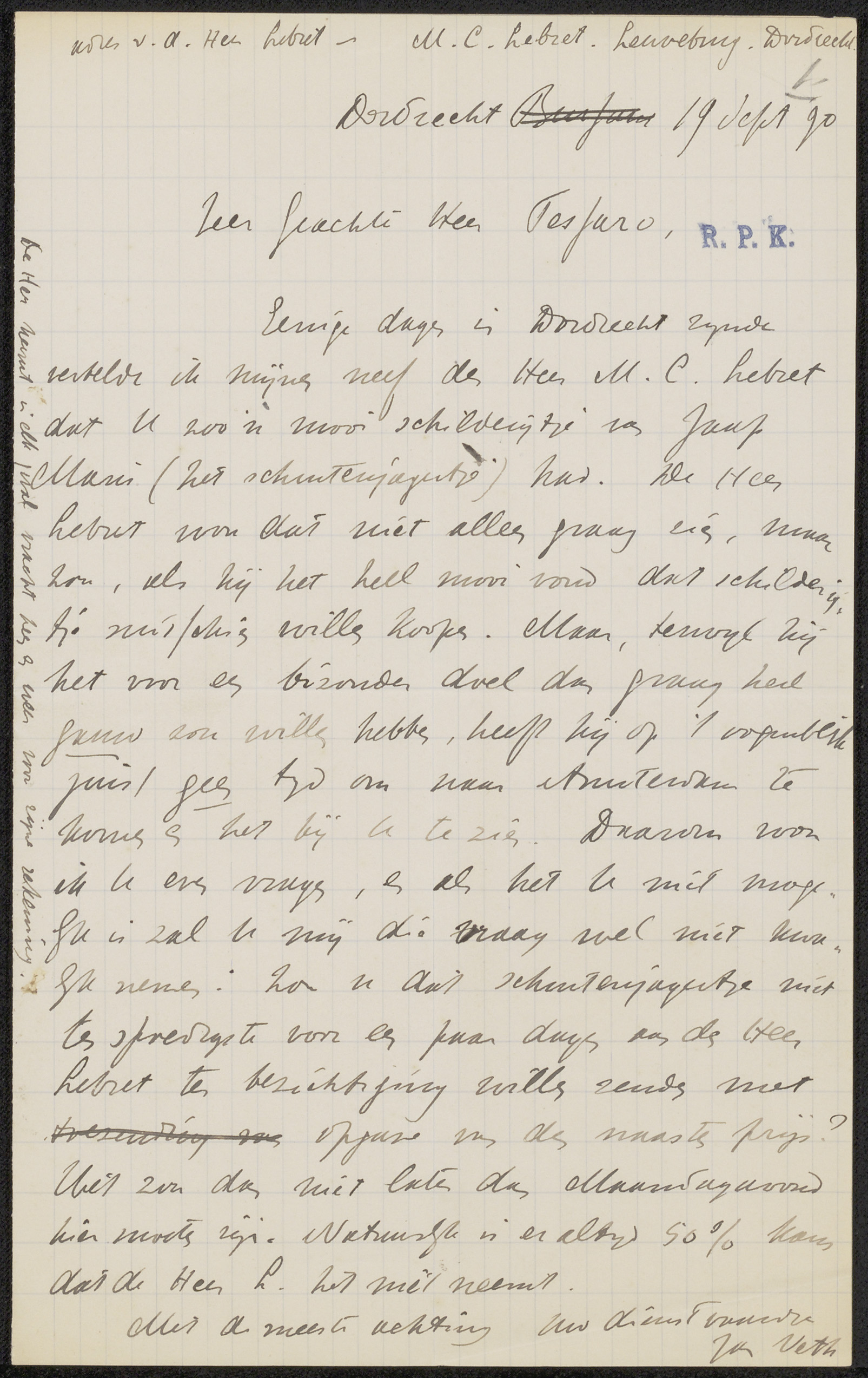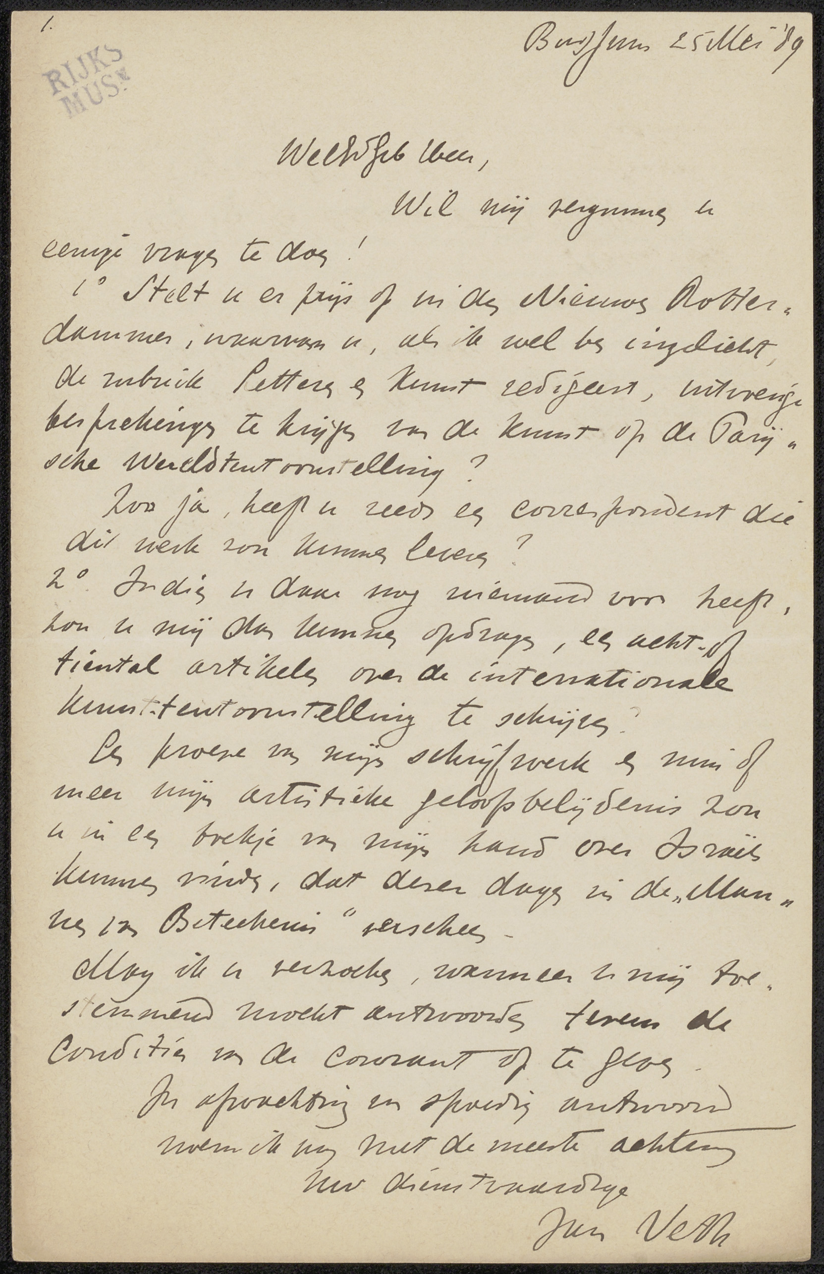 Brief aan Pieter Haverkorn van Rijsewijk