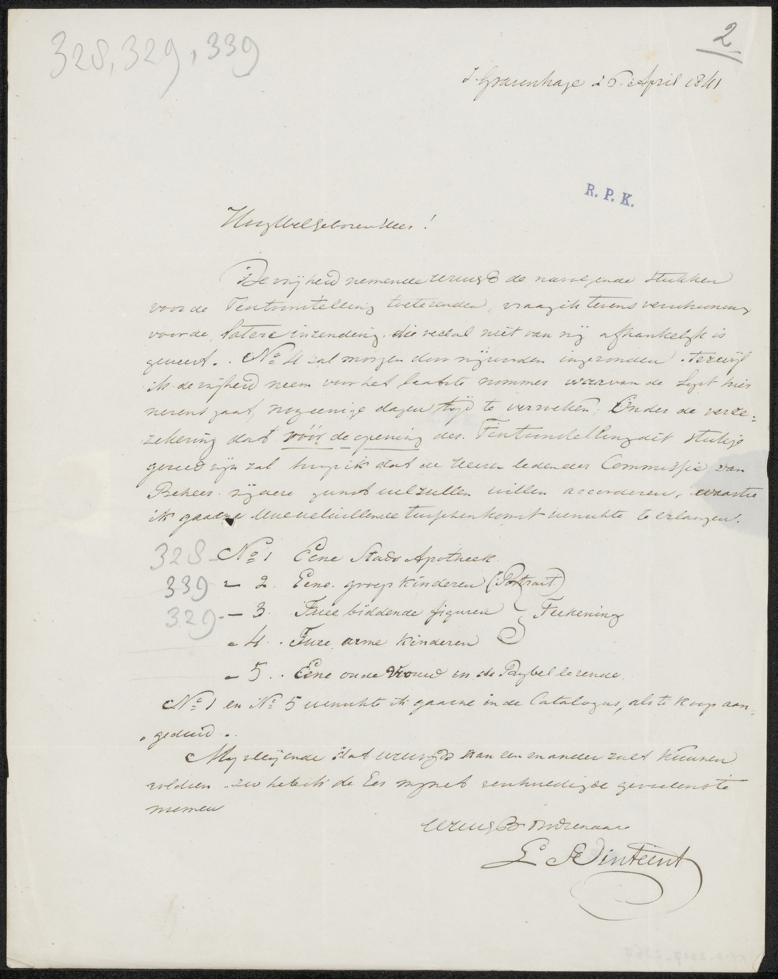 Brief aan de commissie van de Tentoonstelling van Le...