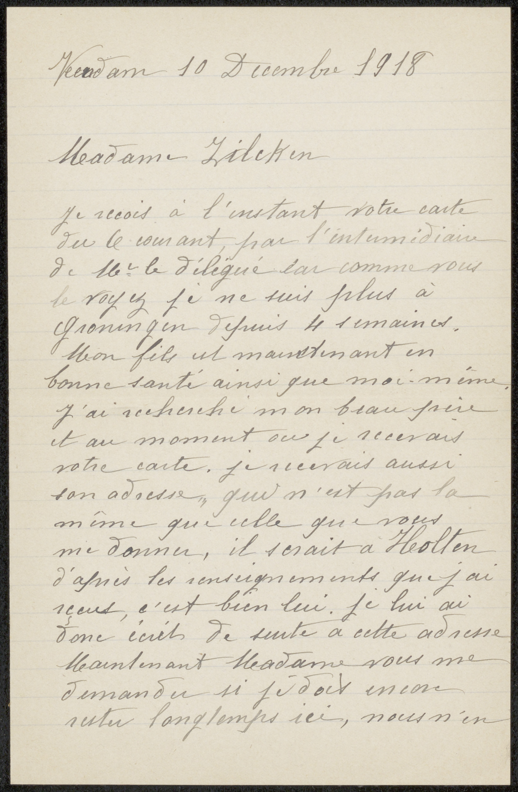 Brief aan Henriette Wilhelmina van Baak, Philip Zilc...