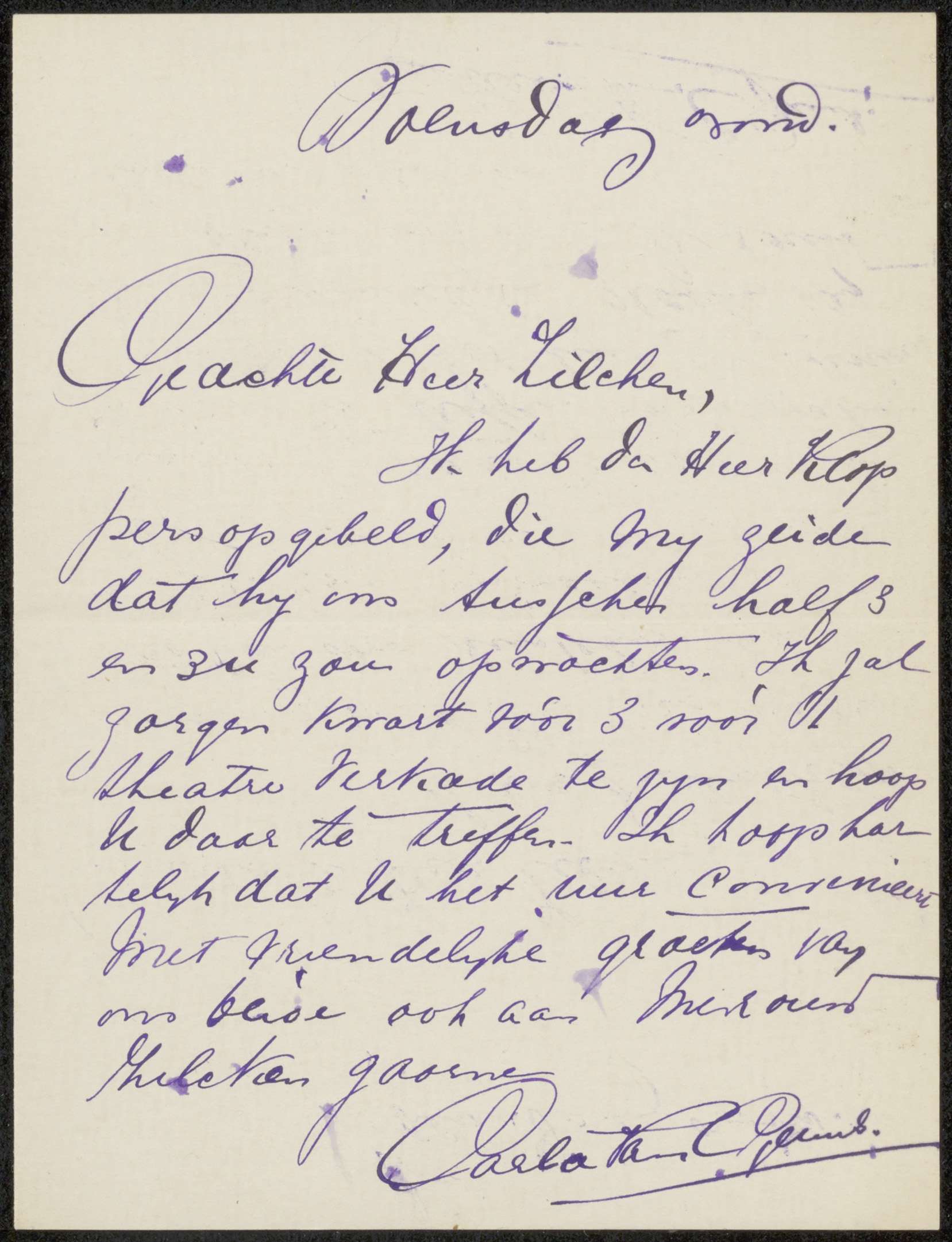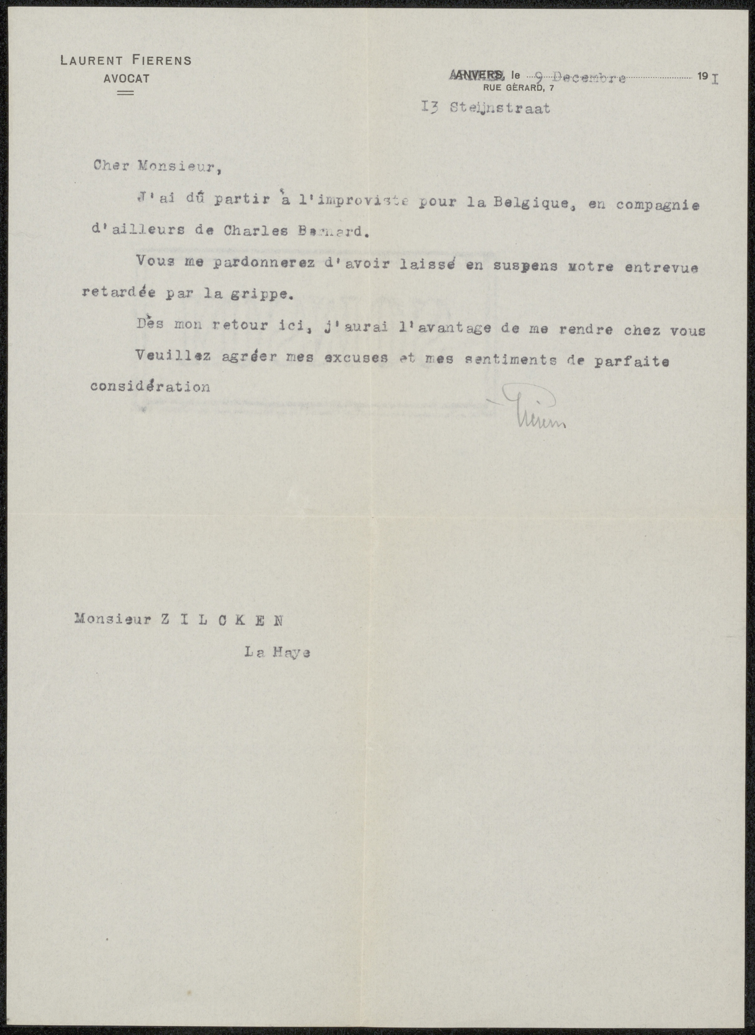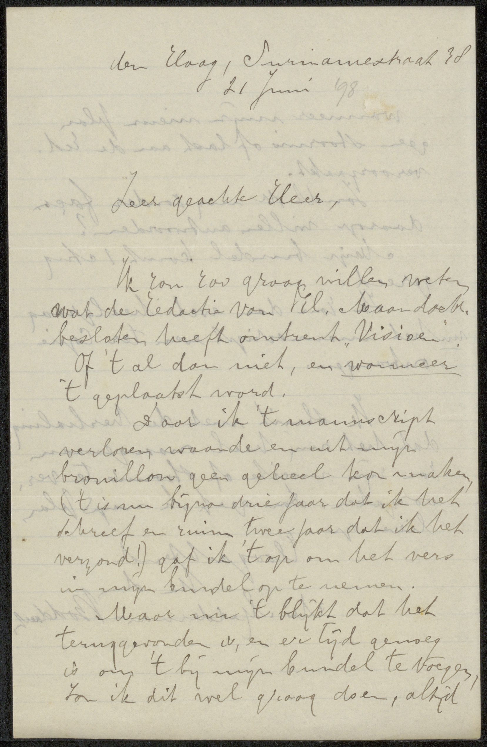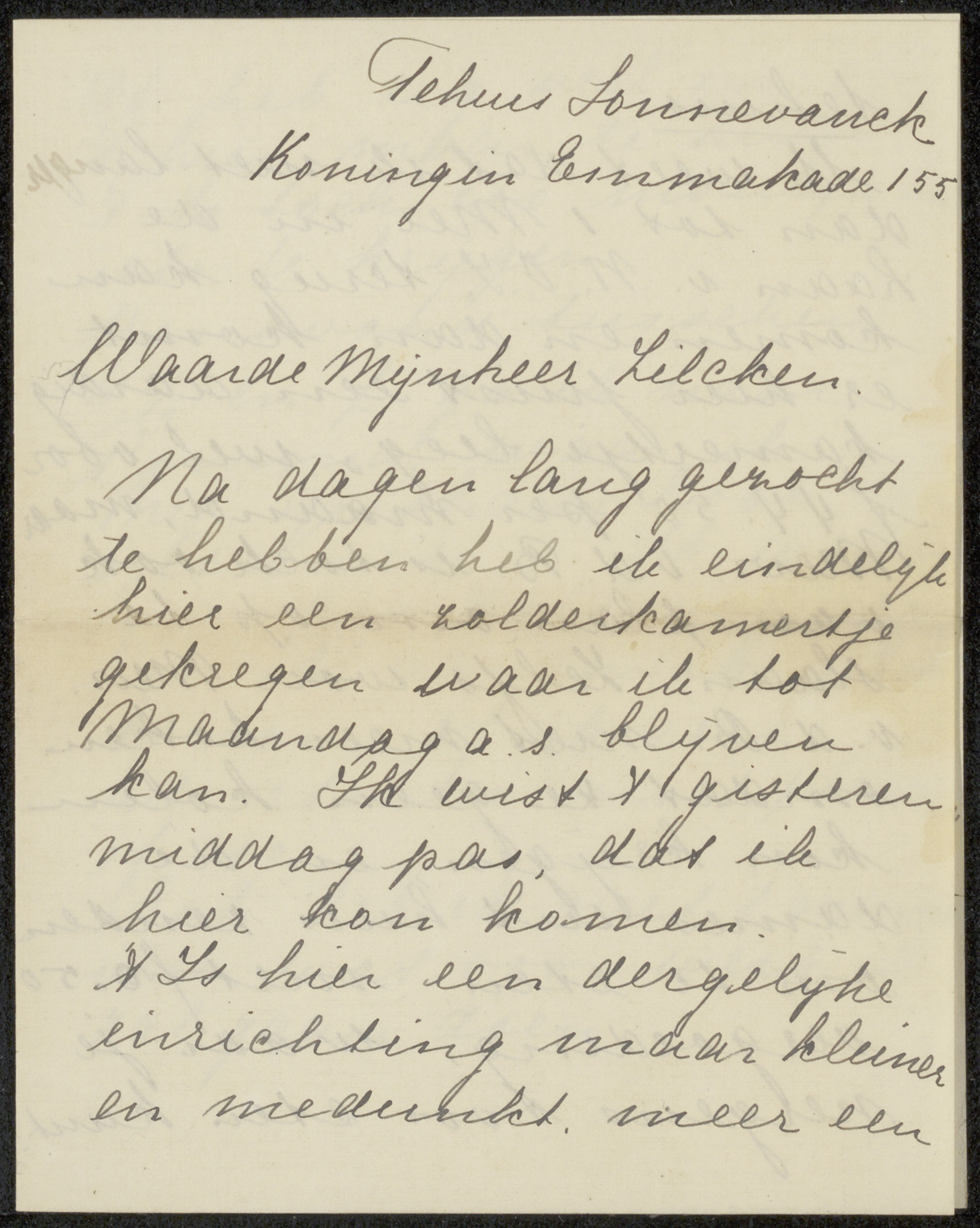 Brief aan Philip Zilcken en Henriette Wilhelmina van...
