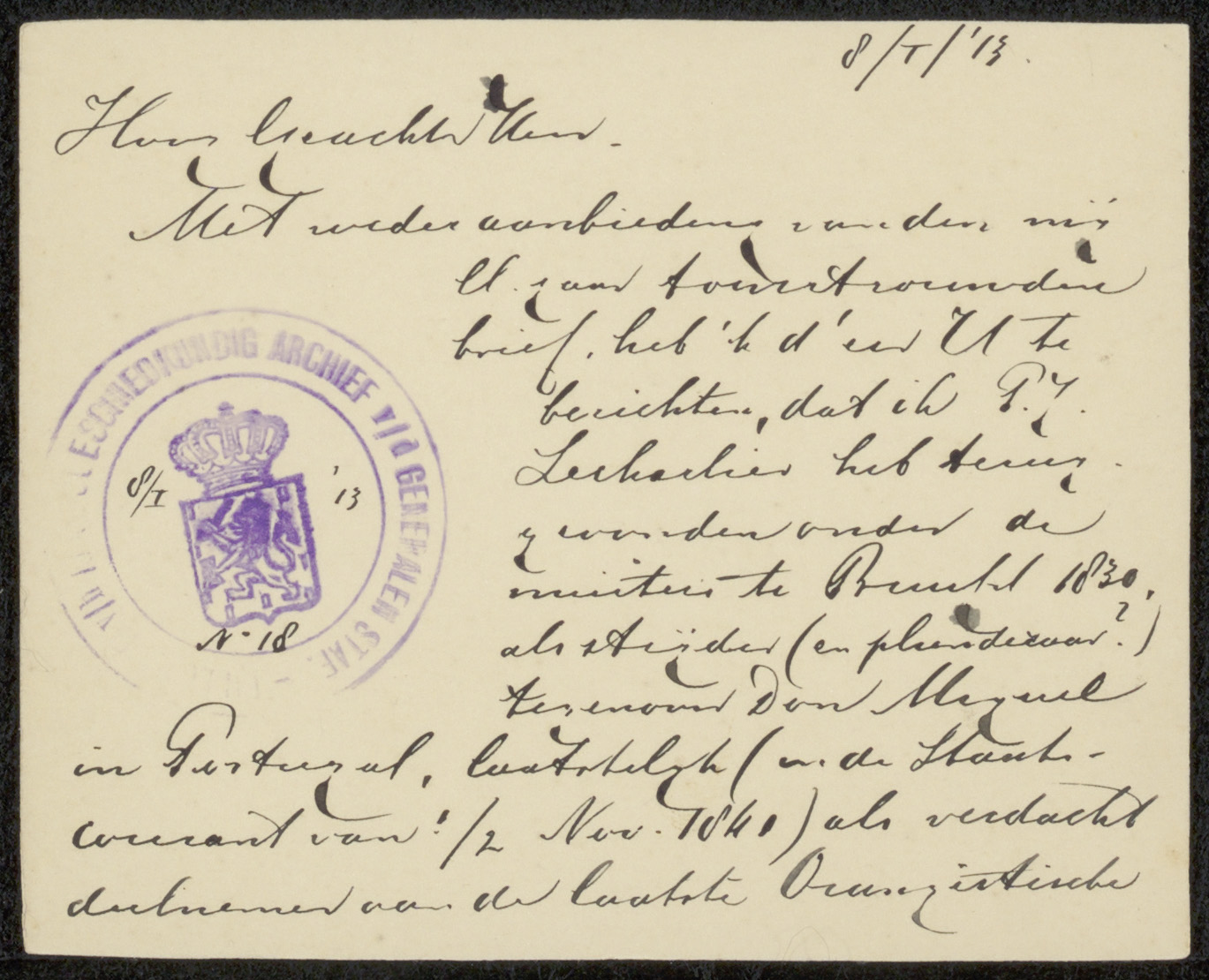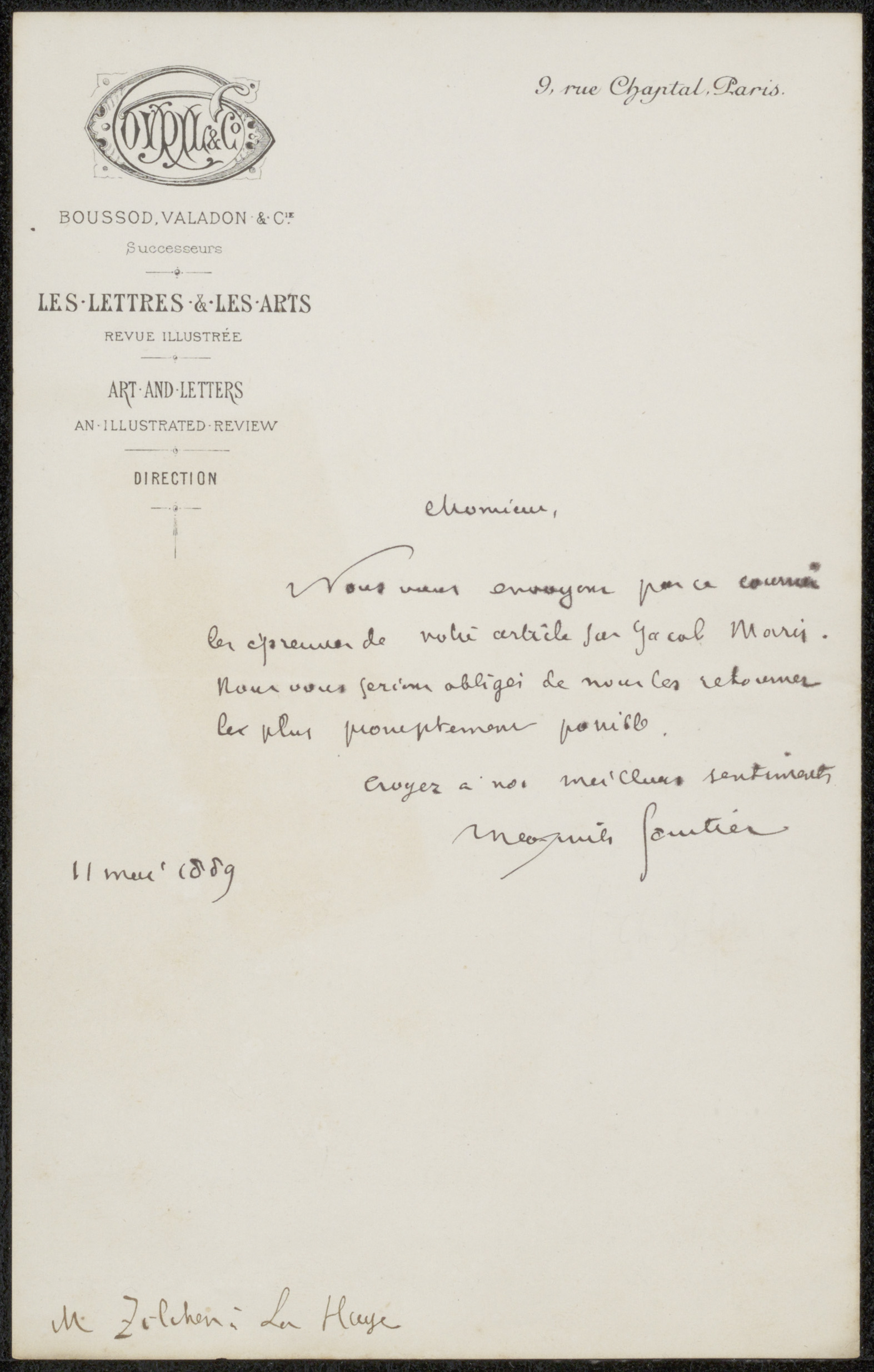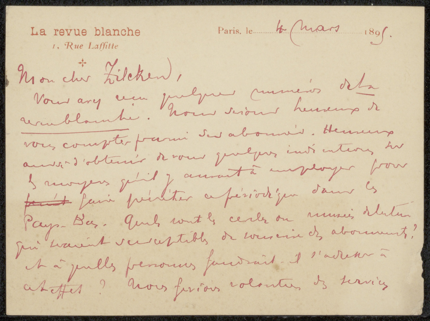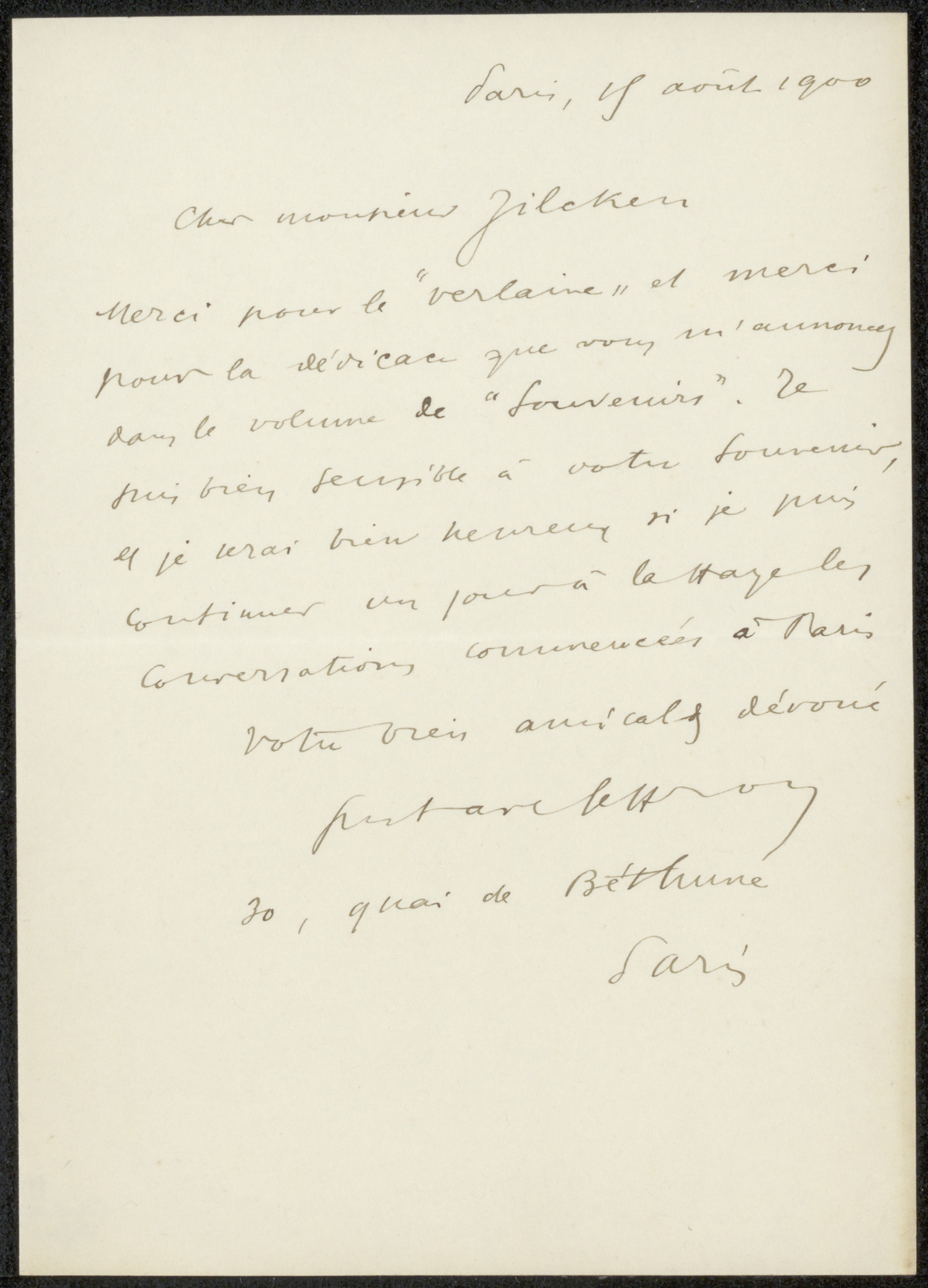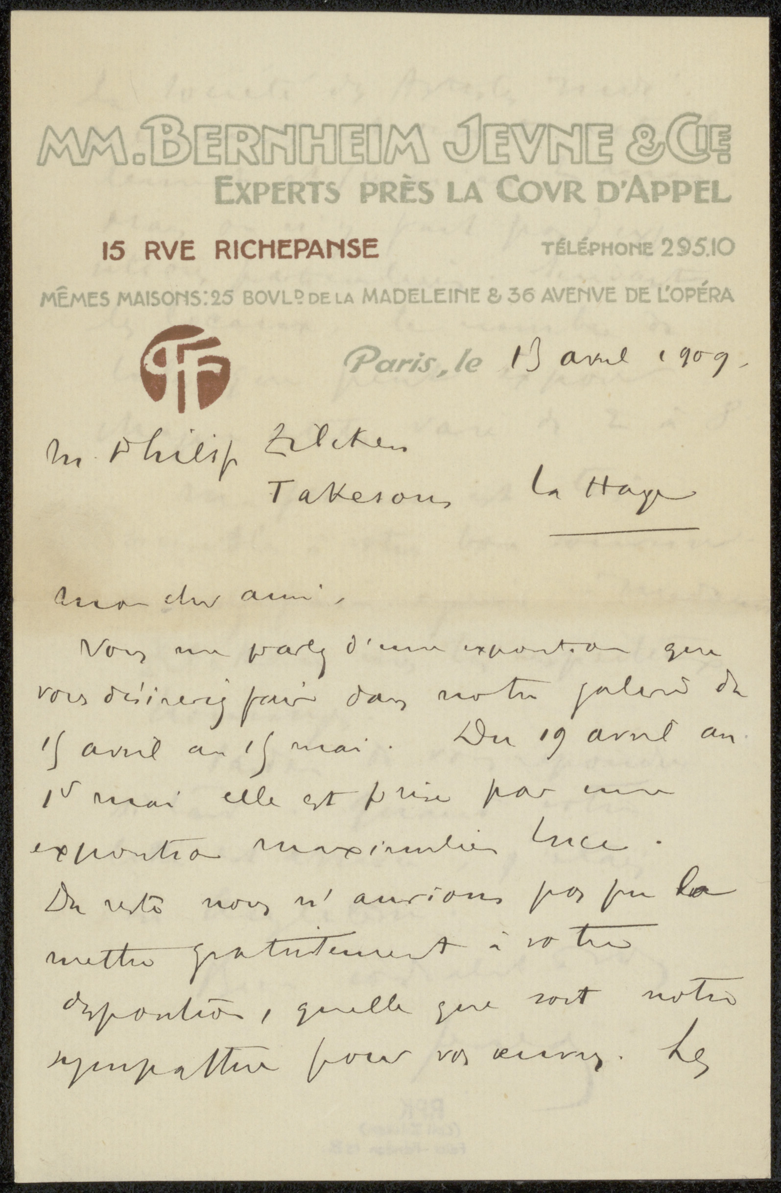 Brief aan Philip Zilcken en Henriette Wilhelmina van...