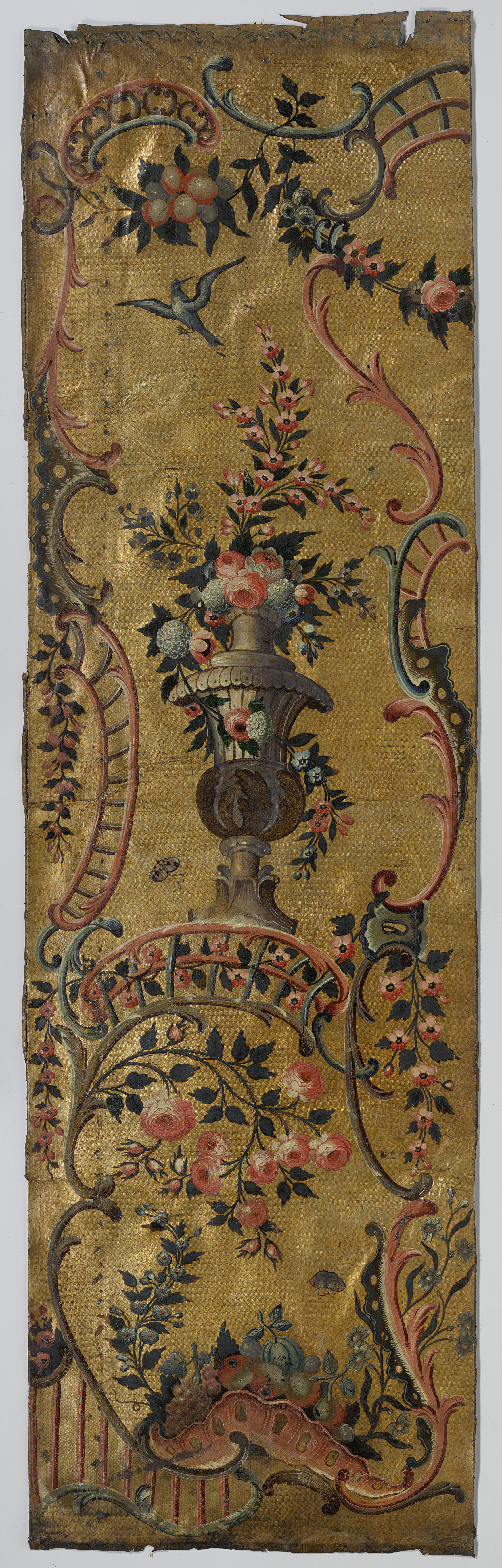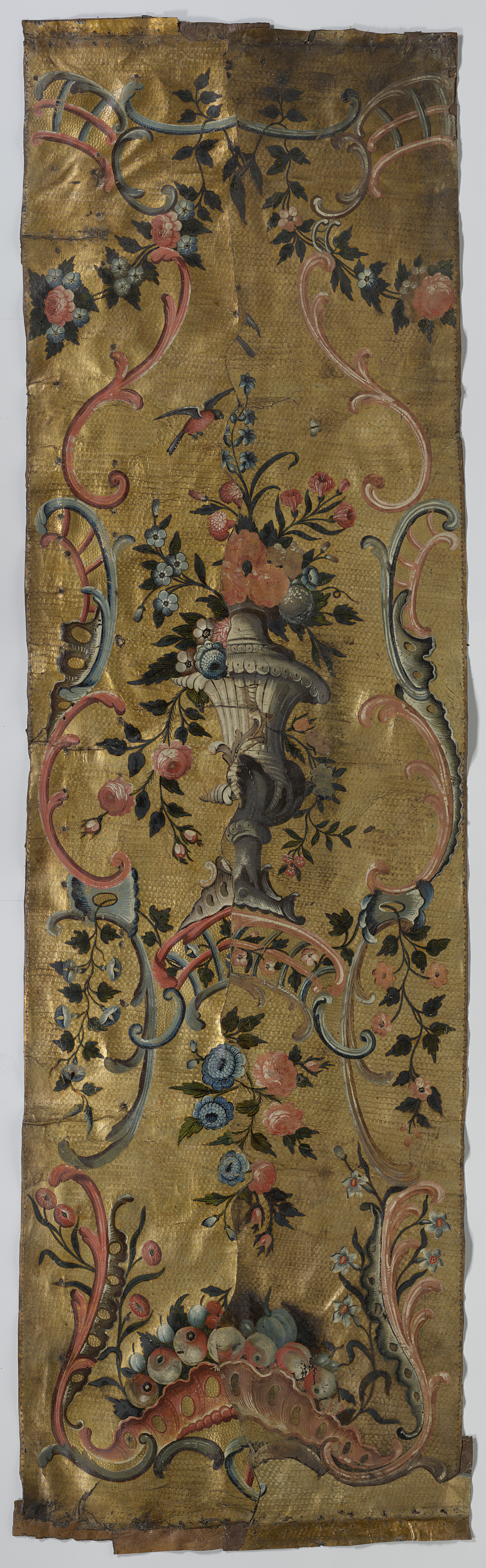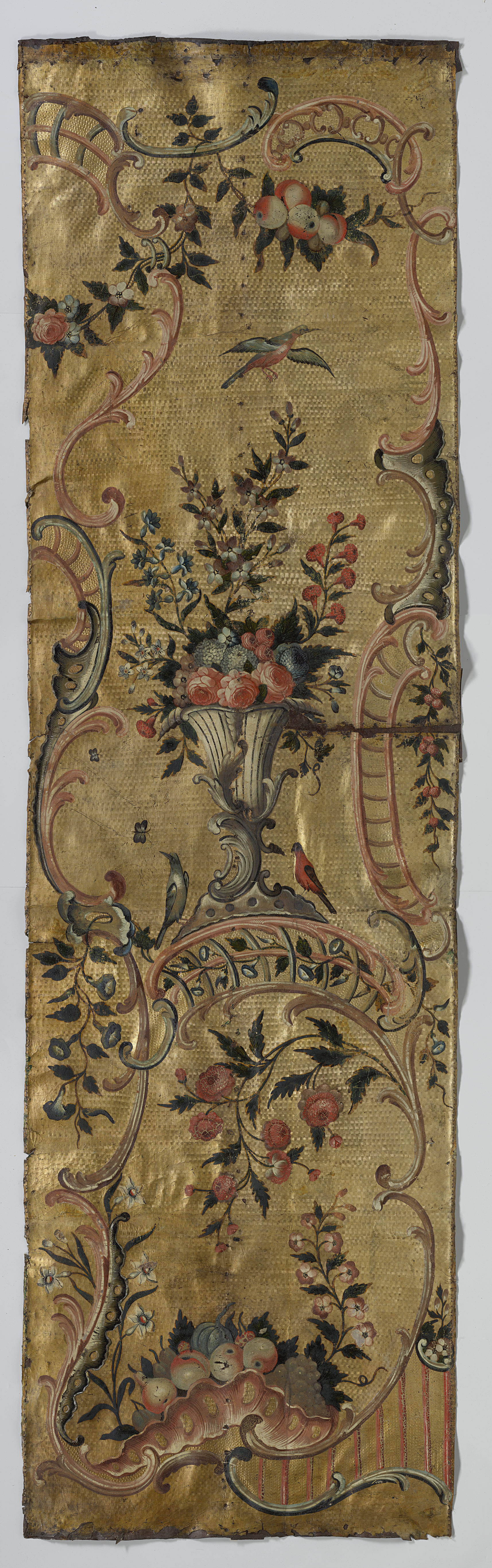 Baan goudleer, verguld geponst fond met beschilderin...