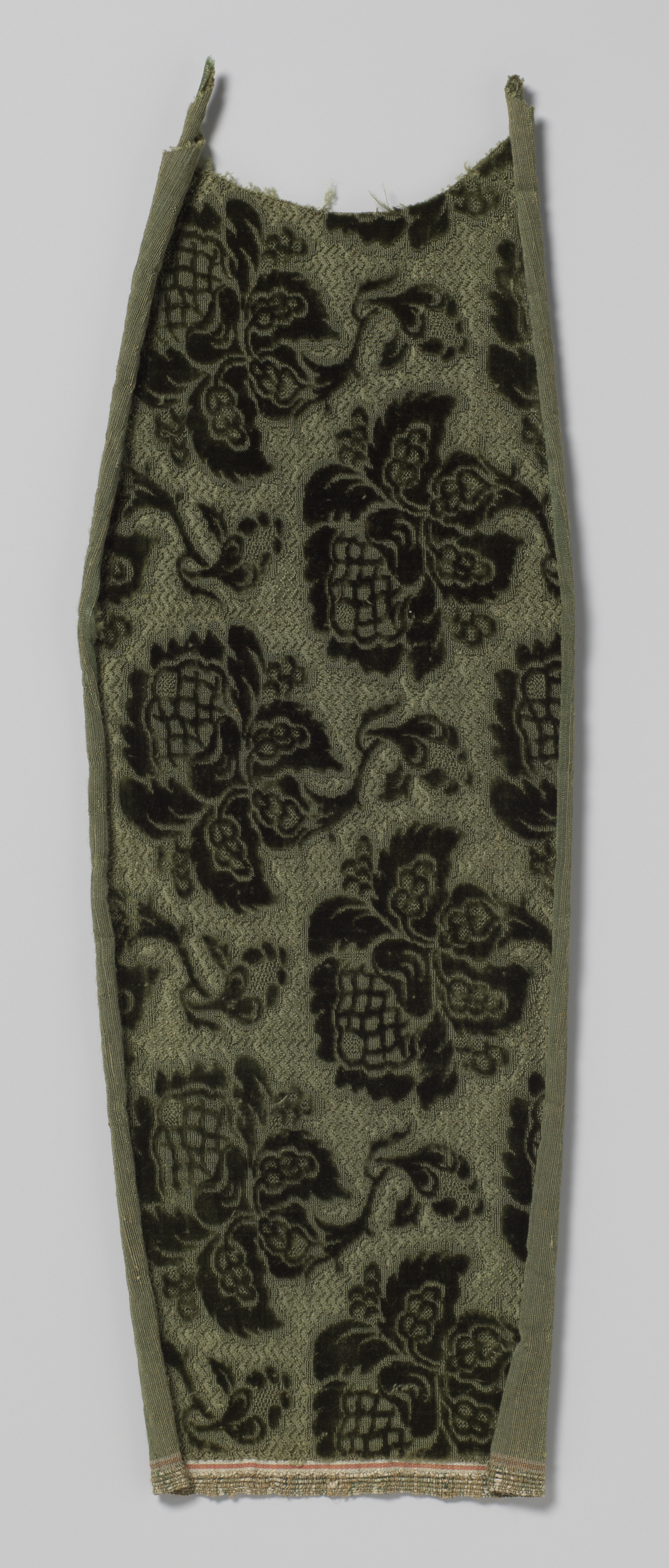 Fragment donkergroen geciseleerd fluweel met patroon...