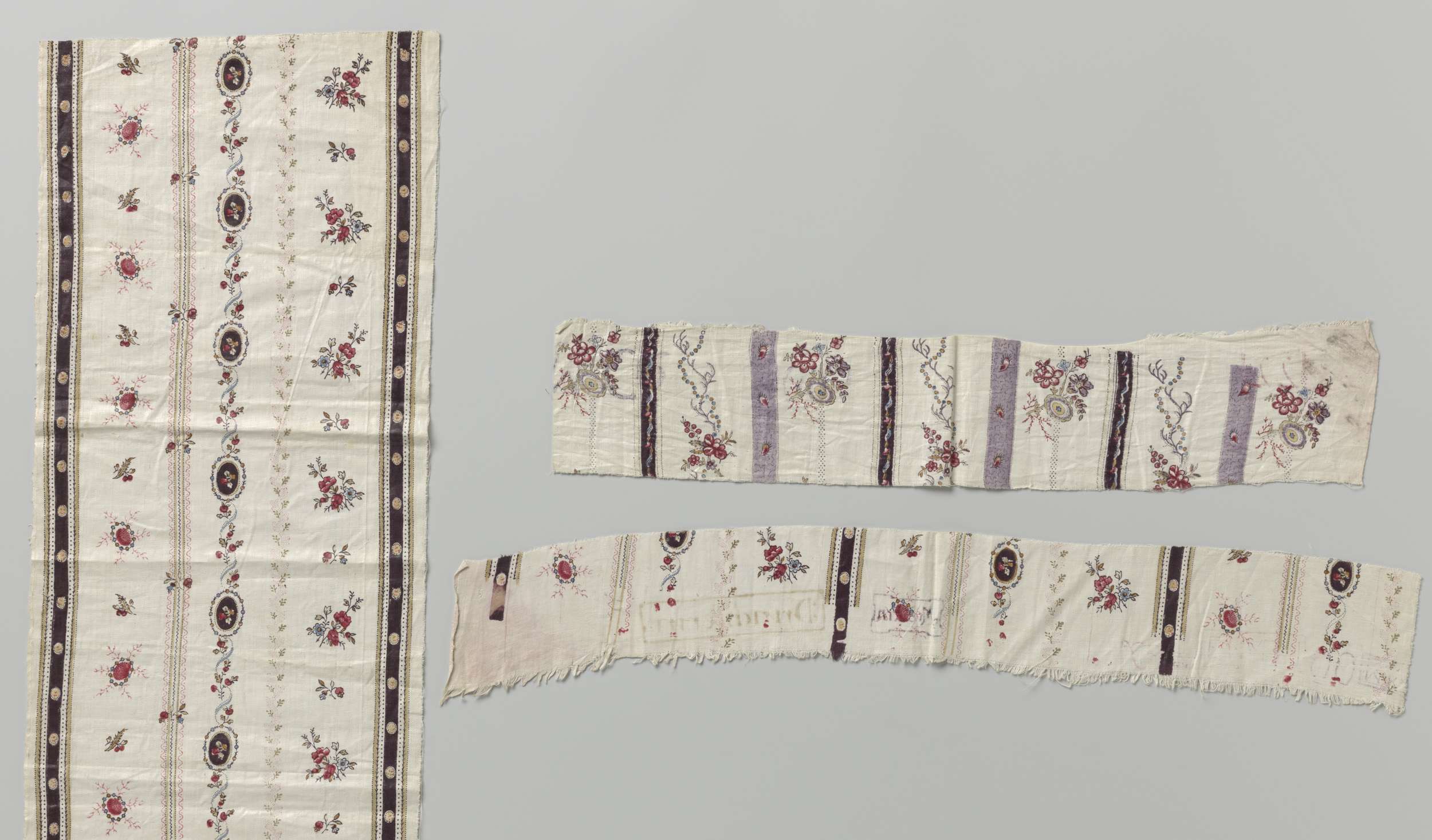 Fragmenten sits met streeppatroon op witte grond met...