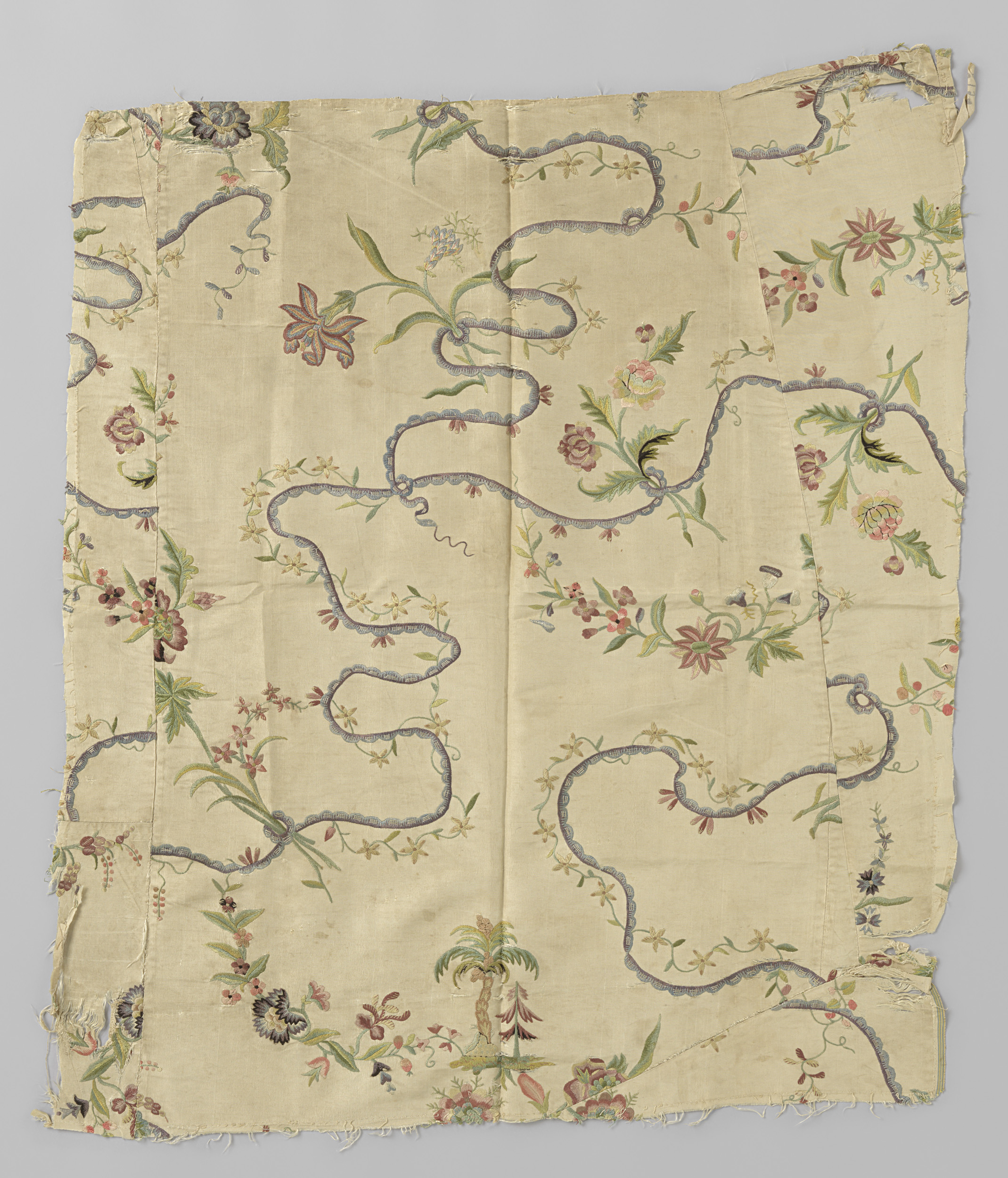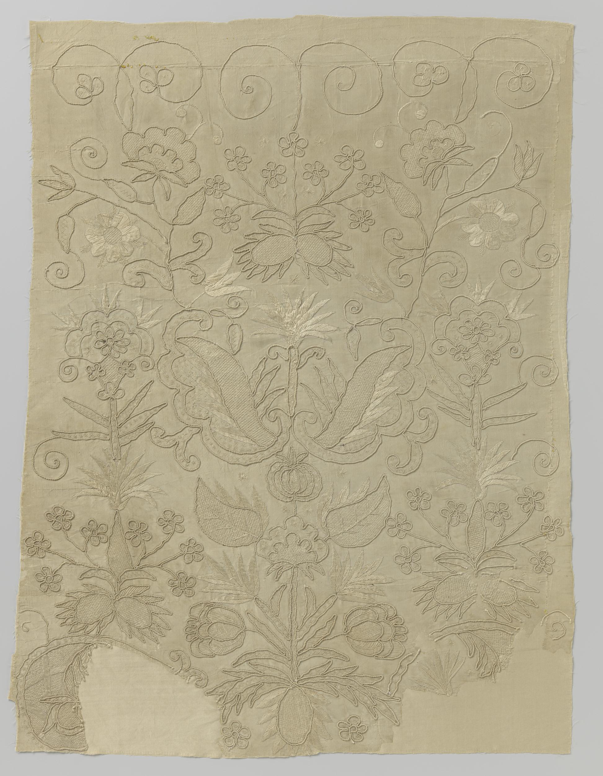 Fragment van een rok van roomkleurige zijde geborduu...