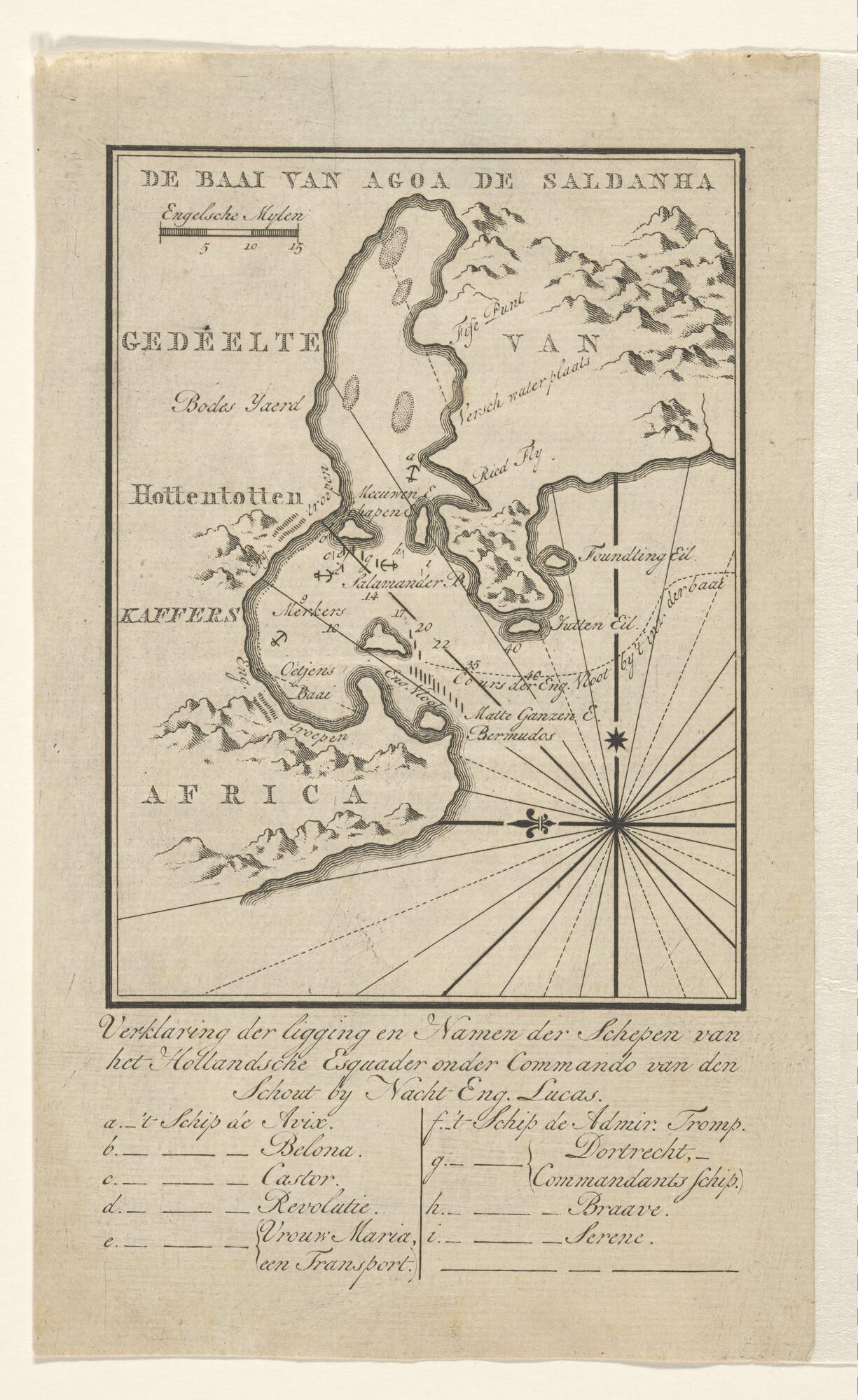 Plattegrond van de Baai van Saldanha in Zuid-Afrika,...