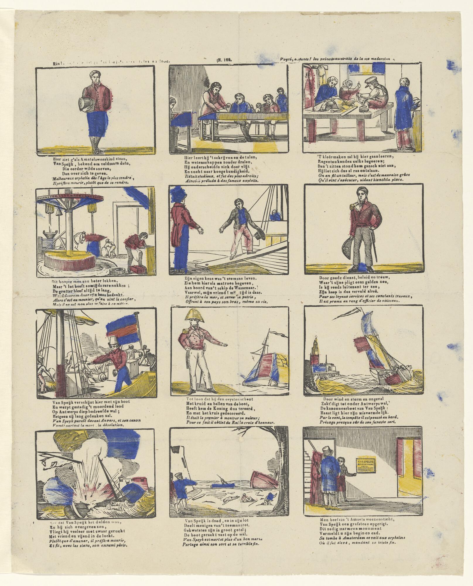 Prent nr 8 uit een serie van 8: een raderstoomschip