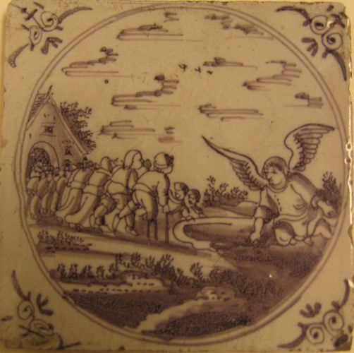 Tegel met 'Engel die neerdaalt in het bad te Betesda...