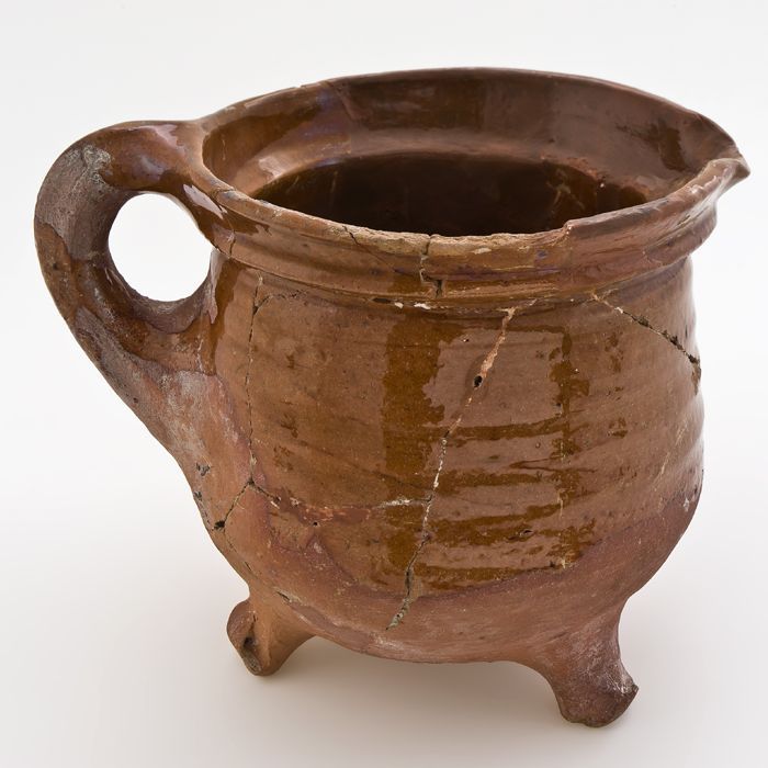 Aardewerk kookkan op drie poten, grape-model, één oo...