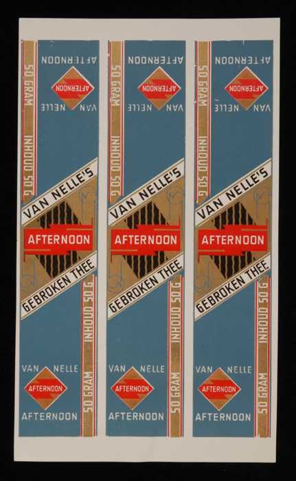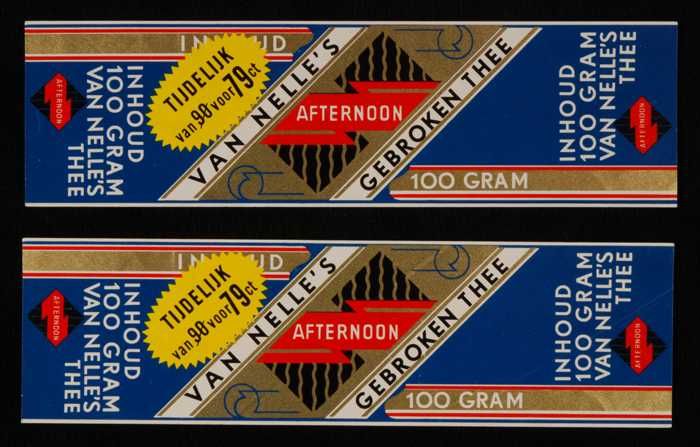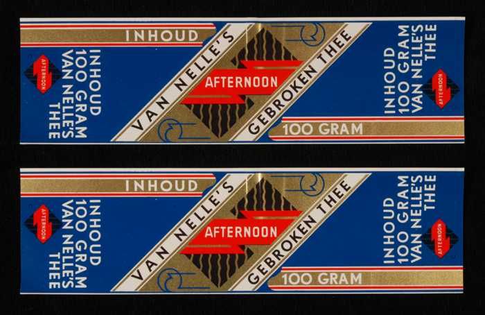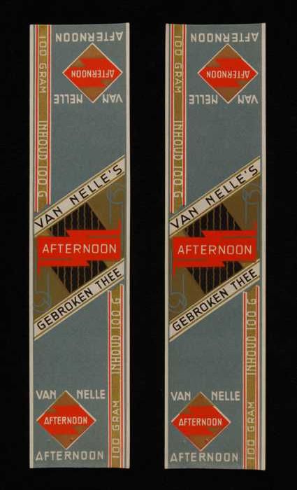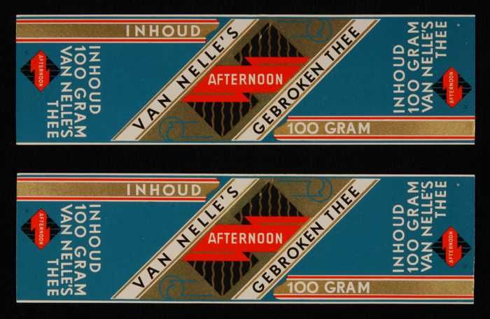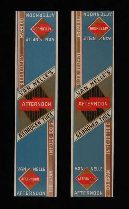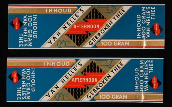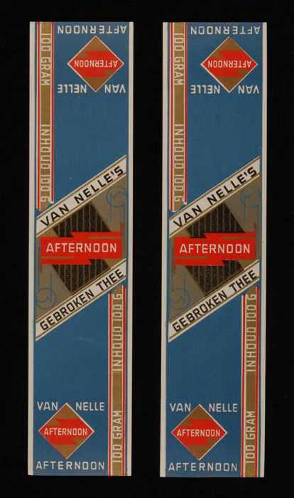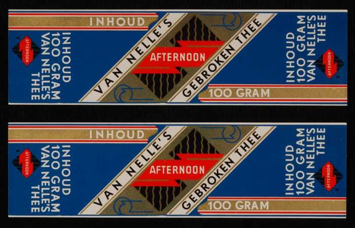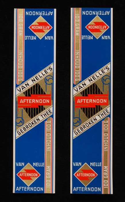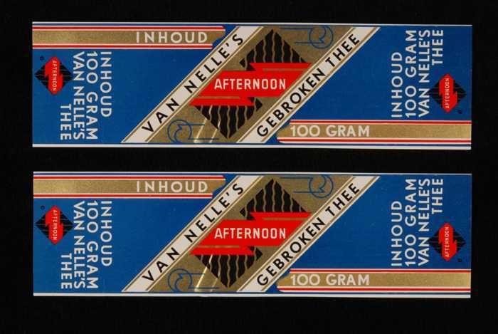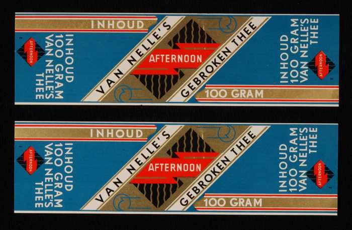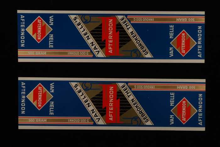 Twee blauw, goud en rode labels VAN NELLE'S AFTERNOO...