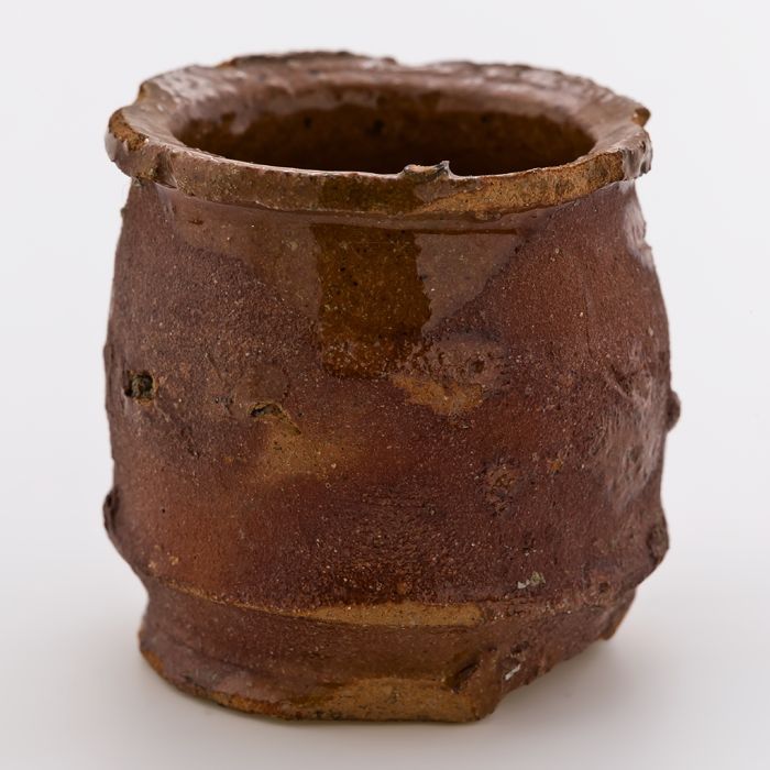 Aardewerk zalfpot, buikmodel smalle hals en breed st...