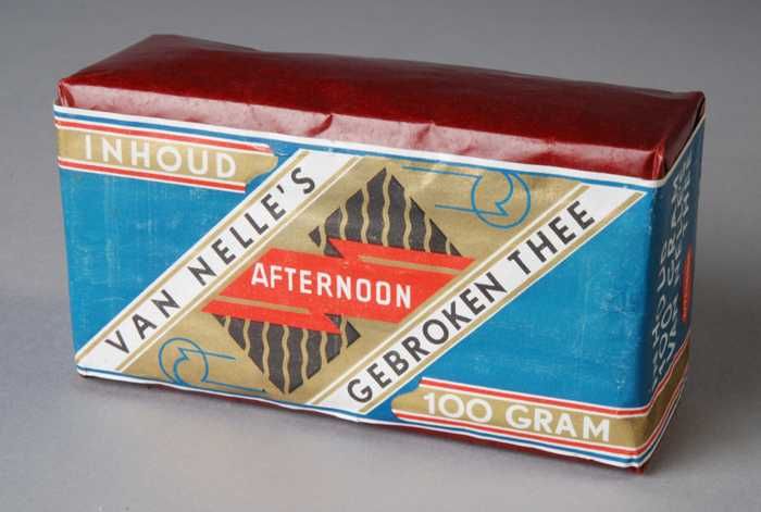 Blauw, papieren label VAN NELLE AFTERNOON THEE, 500 ...