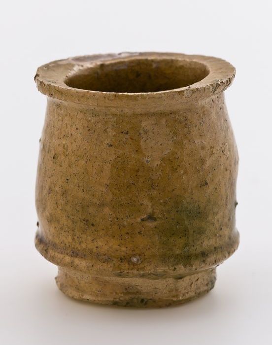 Aardewerk zalfpot, vijzelmodel met uitstulpende rand...