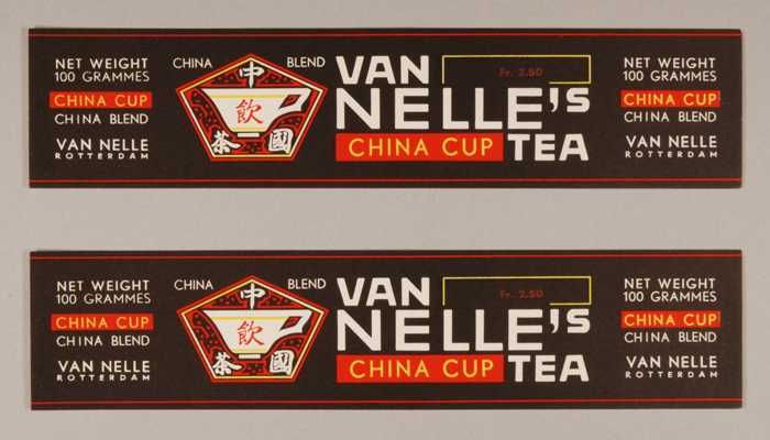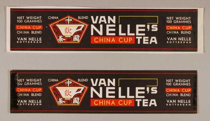 Twee zwarte, papieren labels VAN NELLE'S CHINA CUP T...