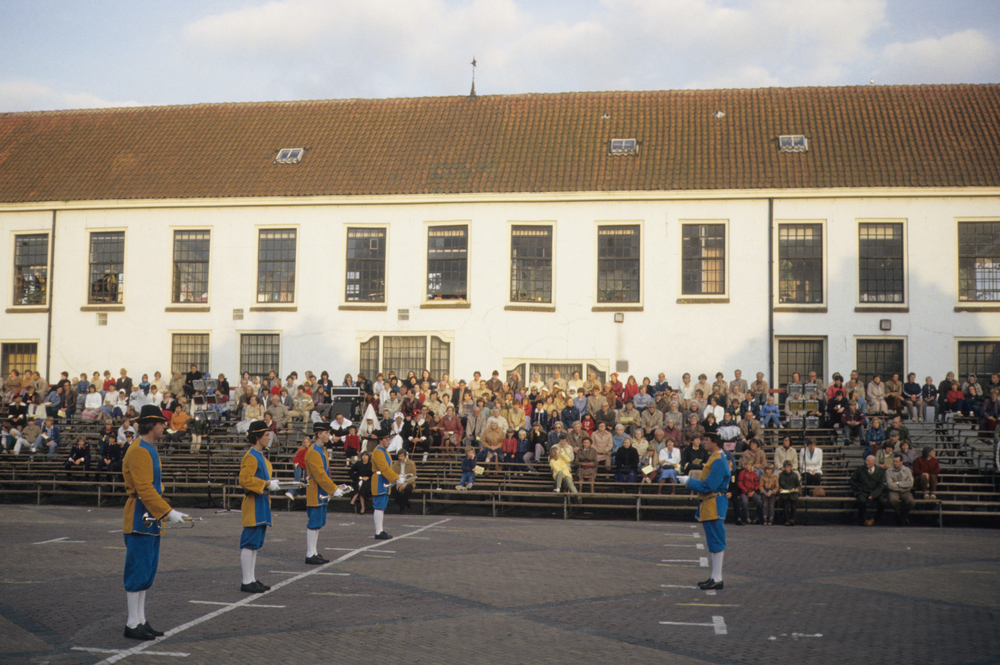 Optreden van een muziekkapel op het Klooster, ter ge...