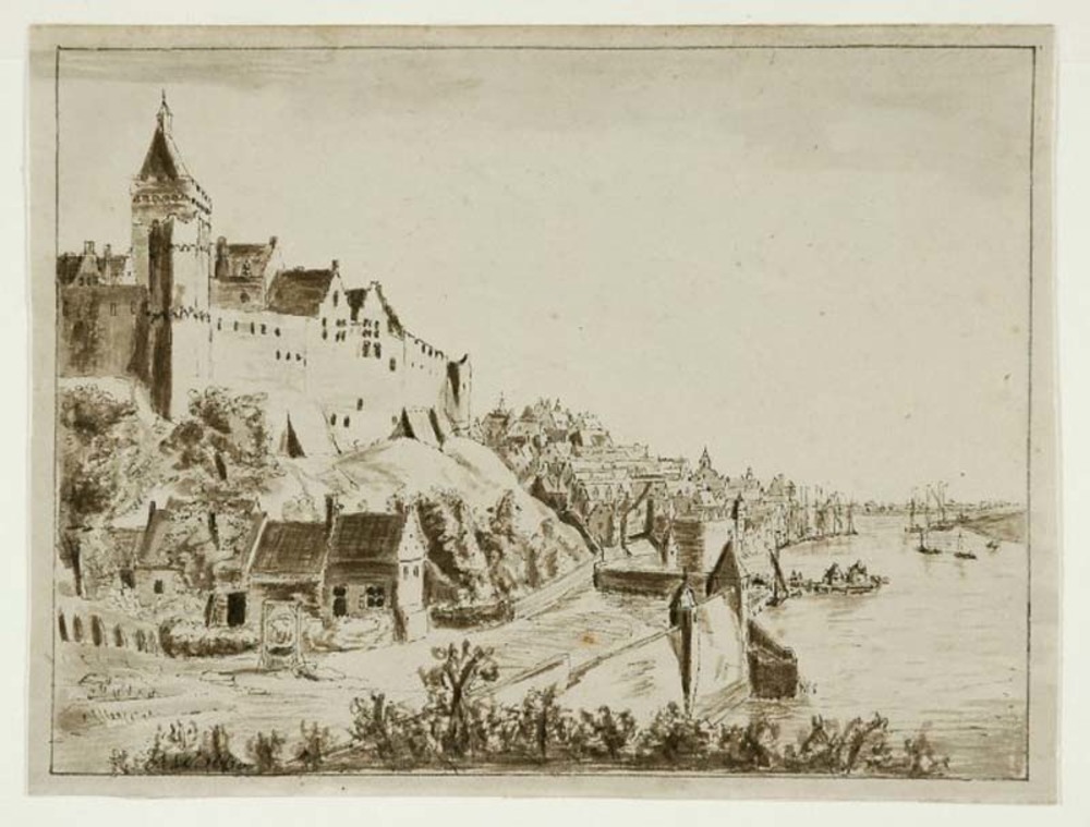 Gezicht op Valkhof en stad uit het noordoosten