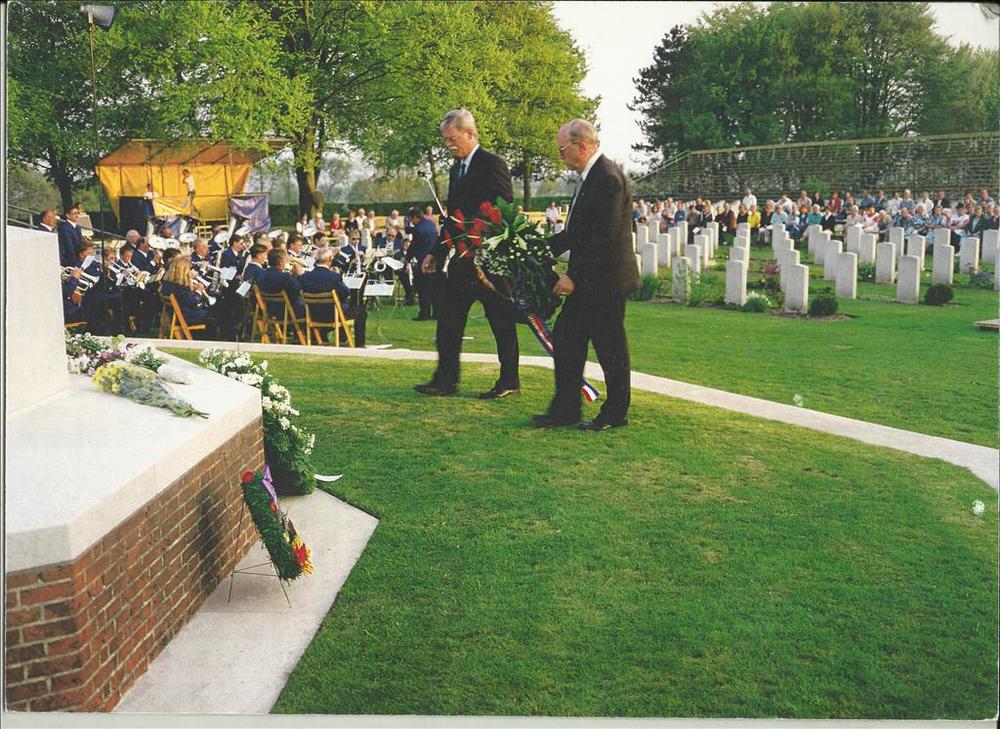 foto van een kranslegging op de Canadese begraafplaa...