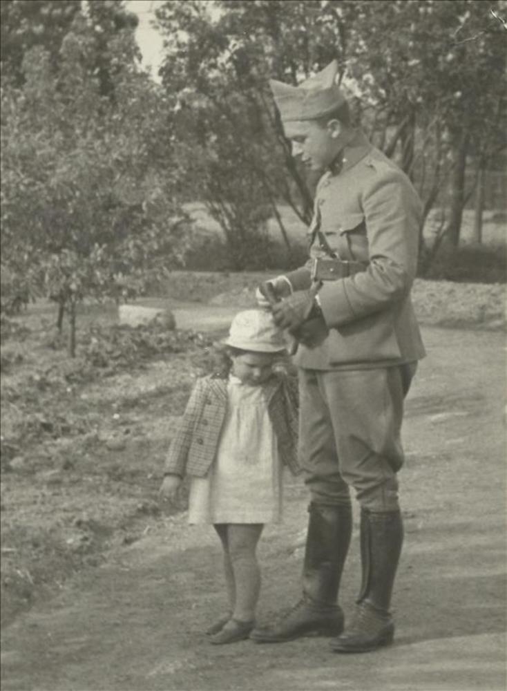Nederlandse luitenant met jonge meisje in tuin