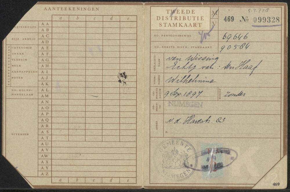 Tweede Distributiestamkaart W. van Wissing-ten Haaf