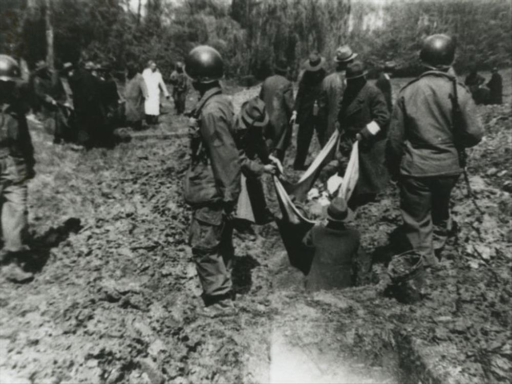 begraven concentratiekampslachtoffers door Duitse bu...