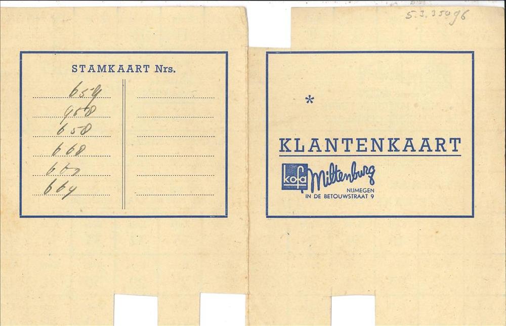 Klantenkaart van Kofa Miltenburg te Nijmegen voor M ...