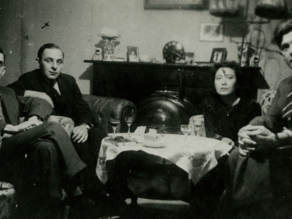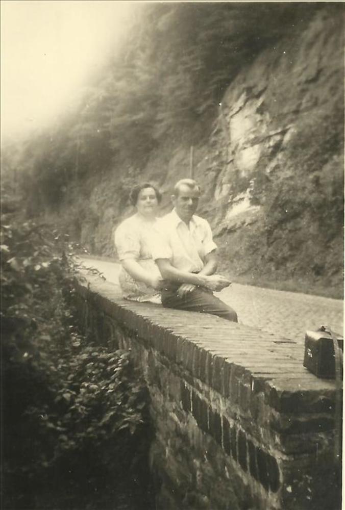 Ned. Indië na WO 2; jonge man en vrouw, muur