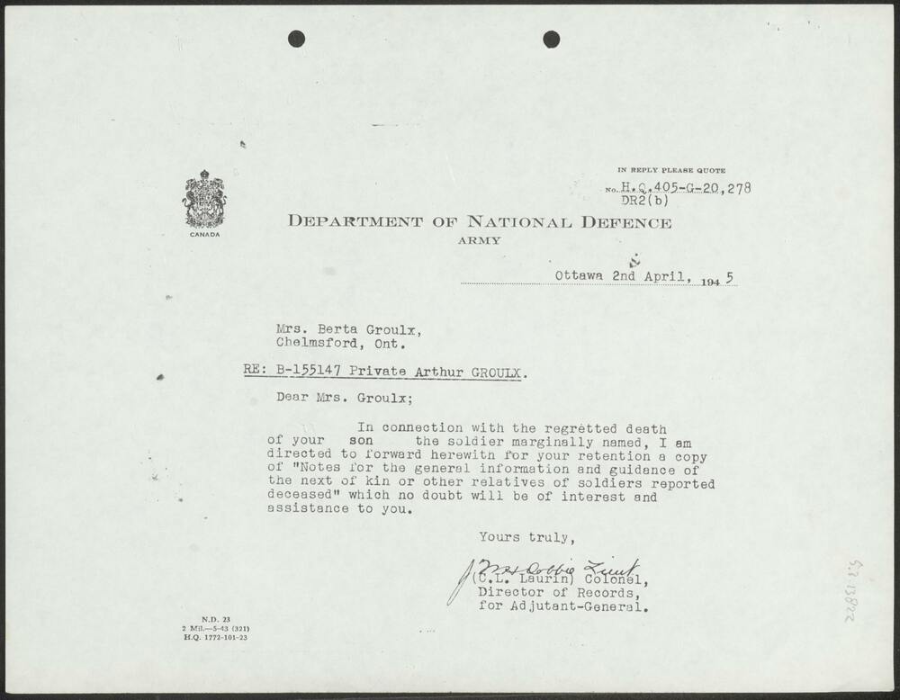 Brief van het Department of National Service (Canada)