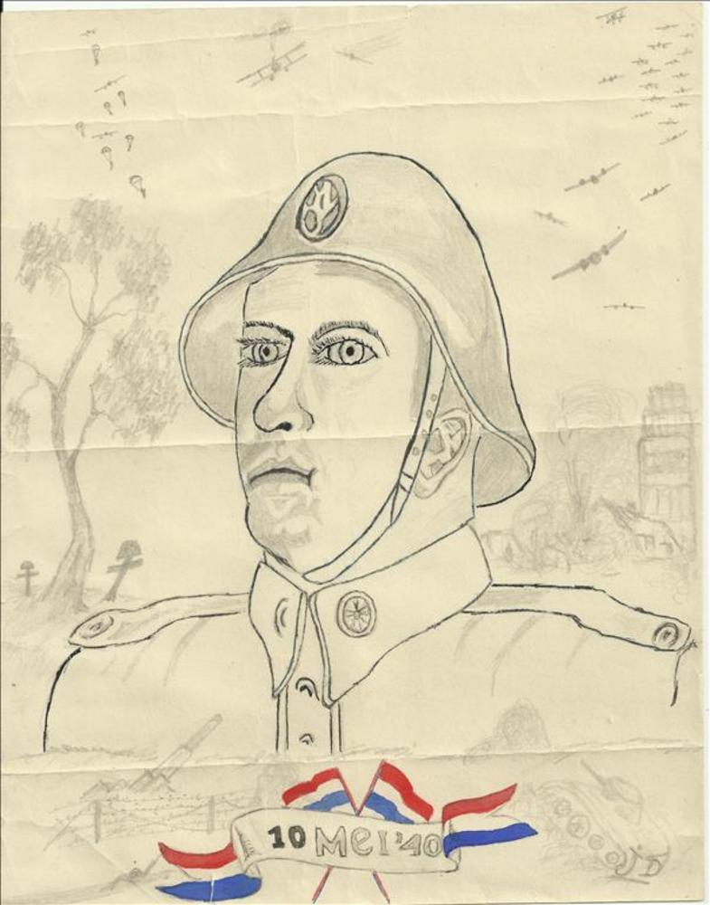 Tekening van Nederlandse soldaat met de tekst '10 me...