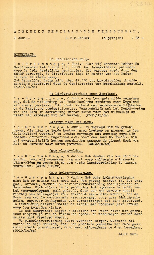 Vel: Algemeen Nederlandsch Persbureau, mededelingen,...