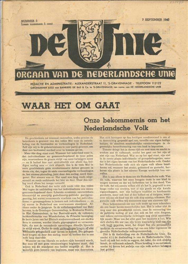De Unie, Orgaan van de Nederlandsche Unie, 7 septemb...