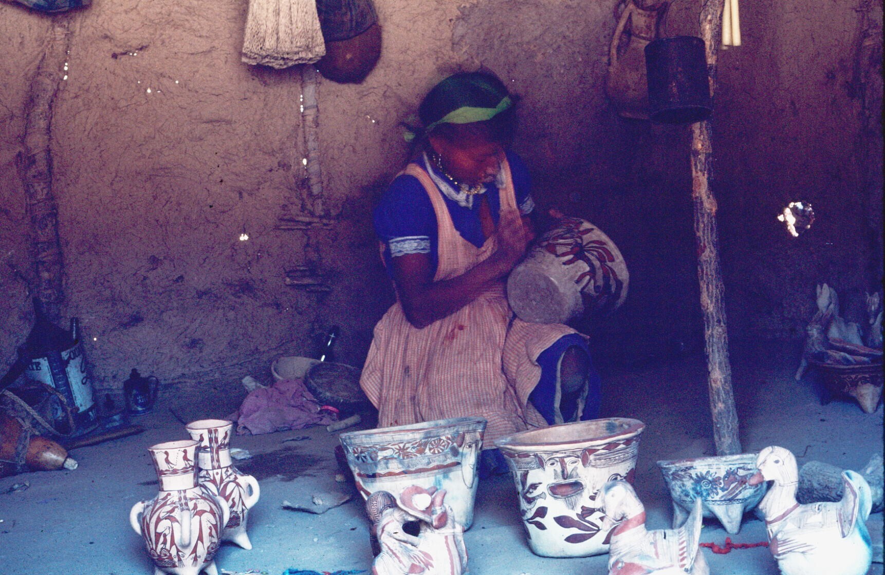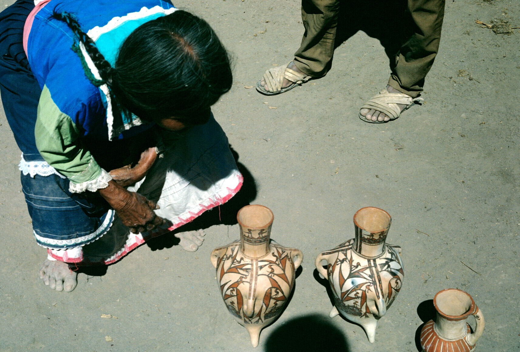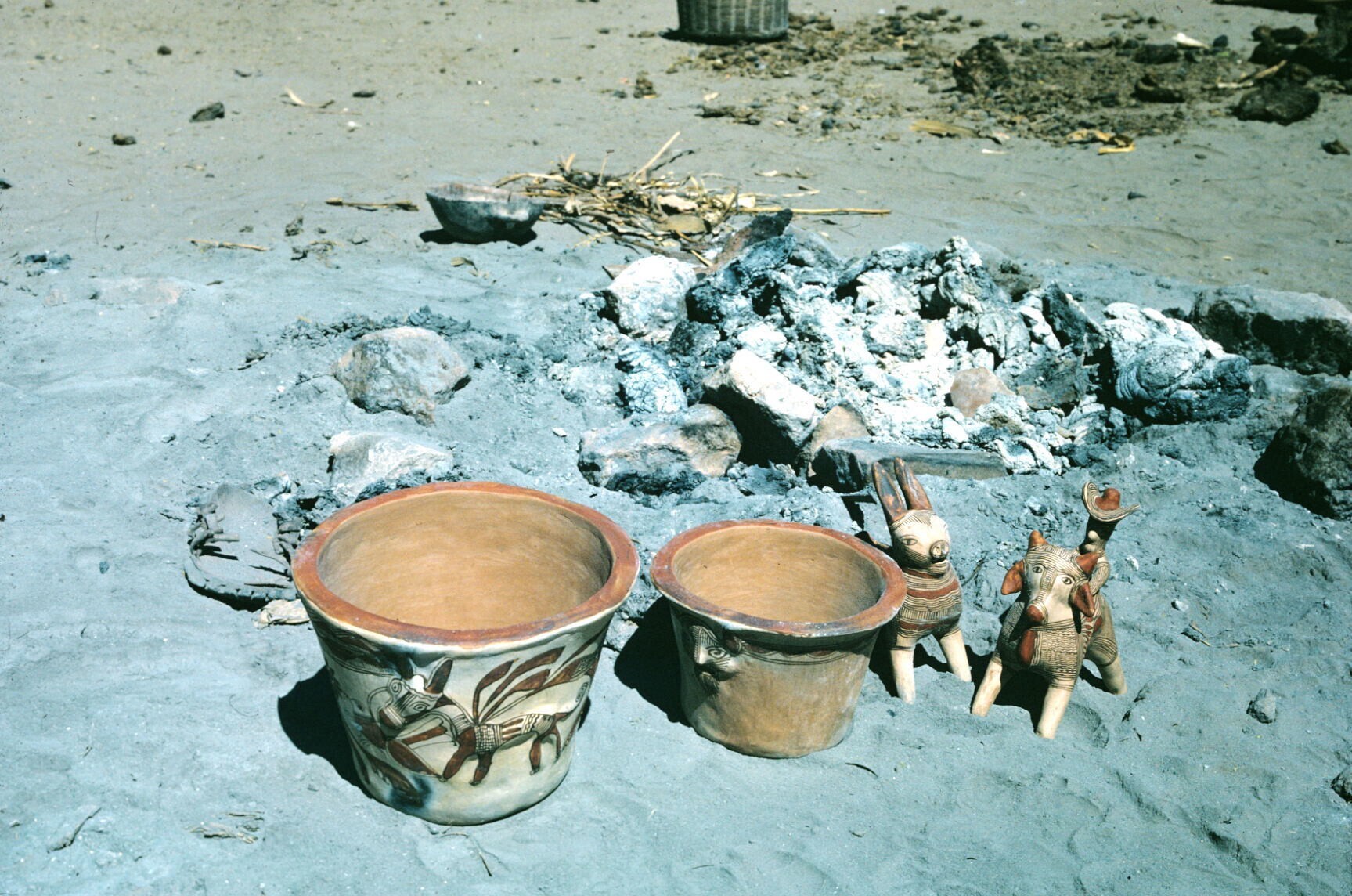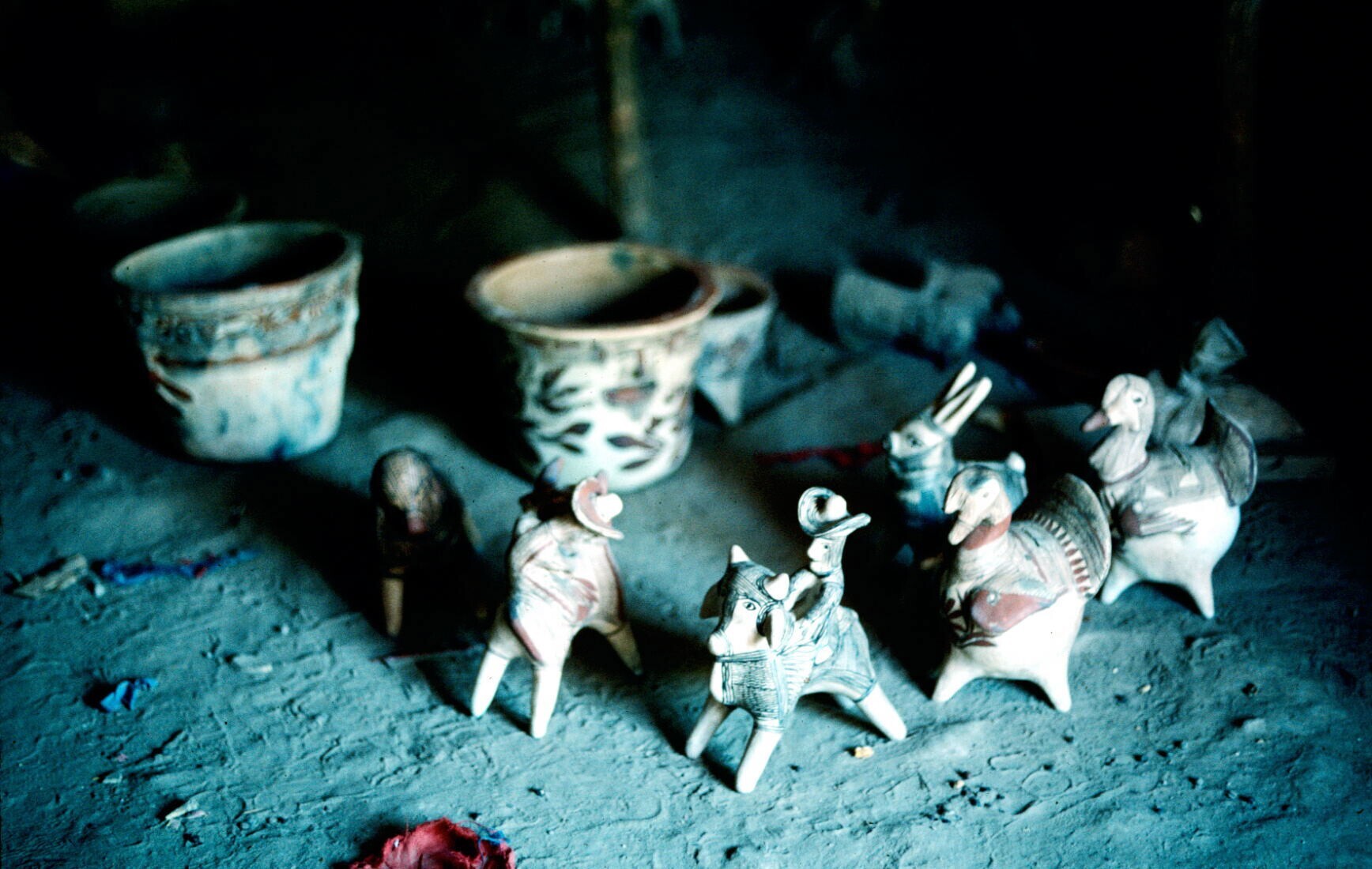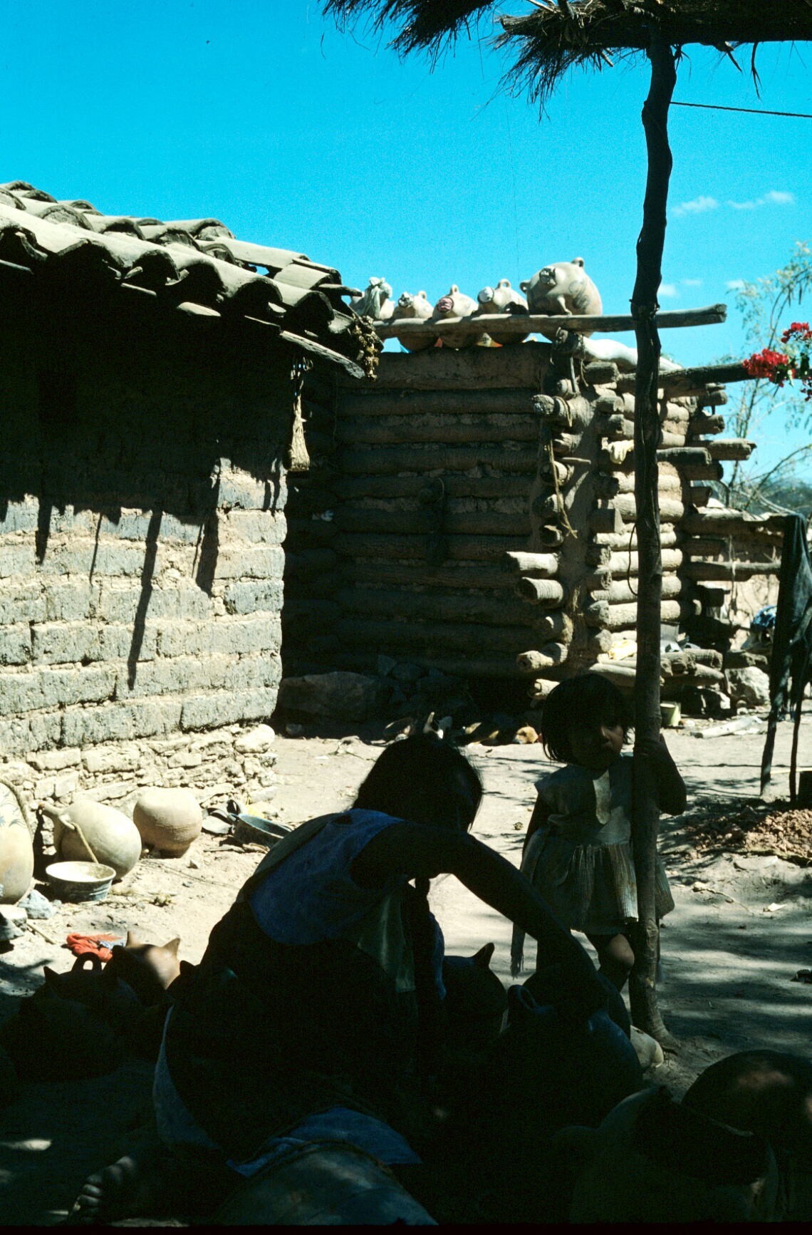 pottenbakster Margarita Gonzálezen familieleden op erf