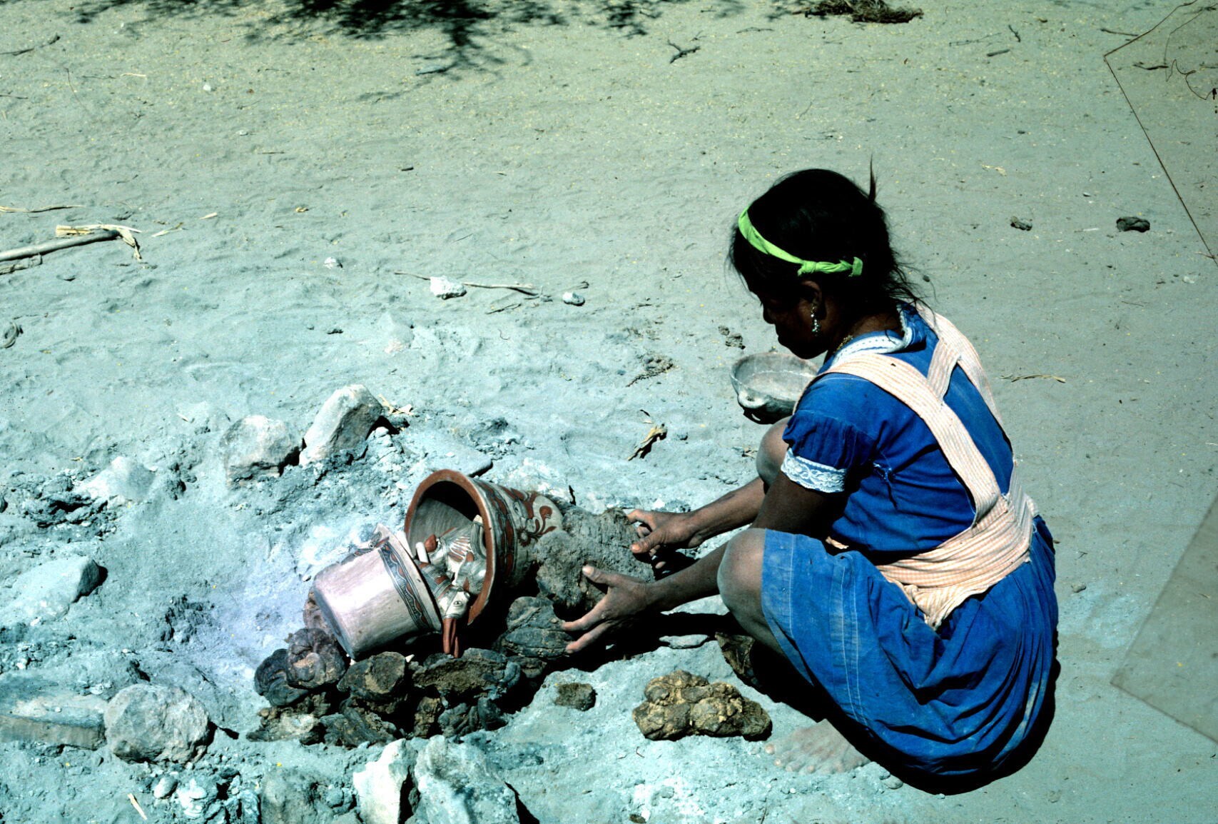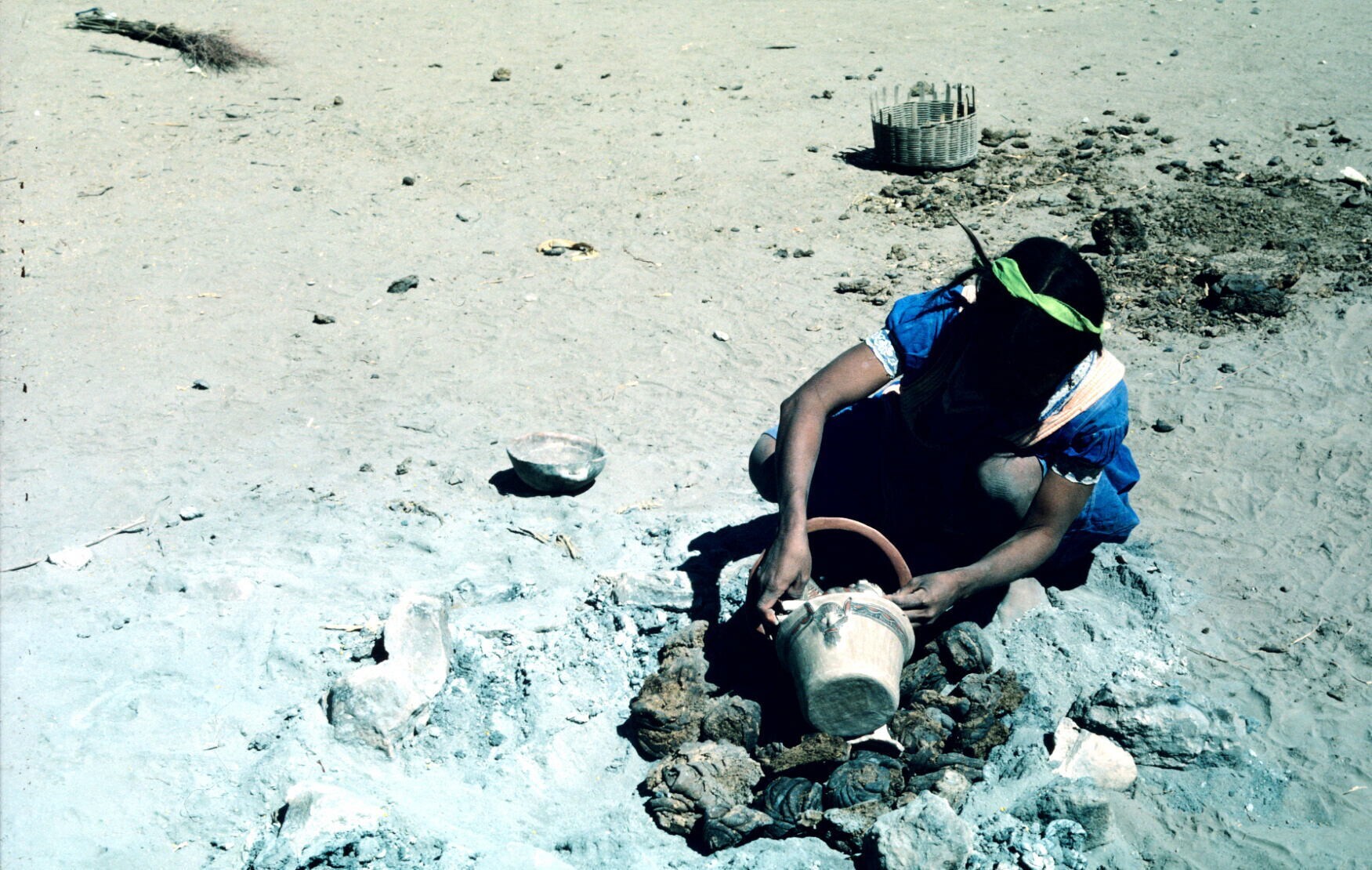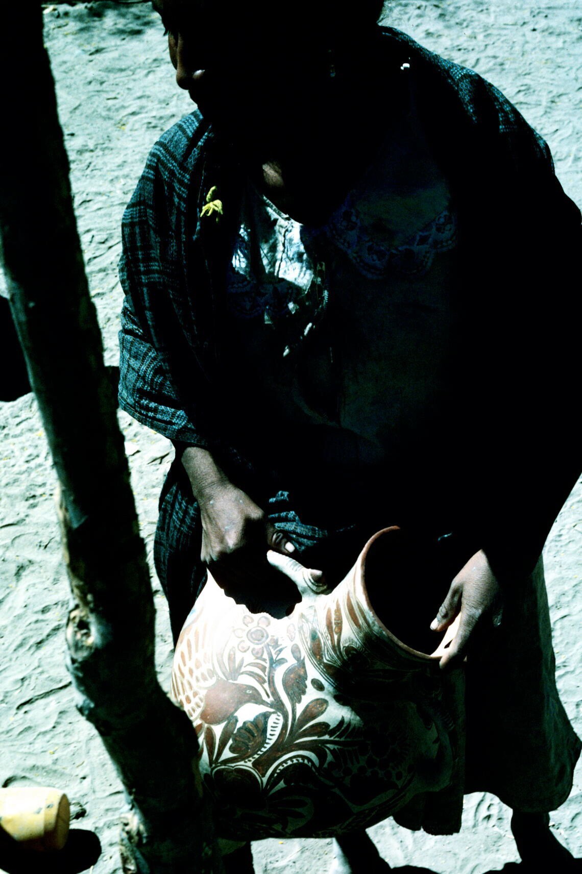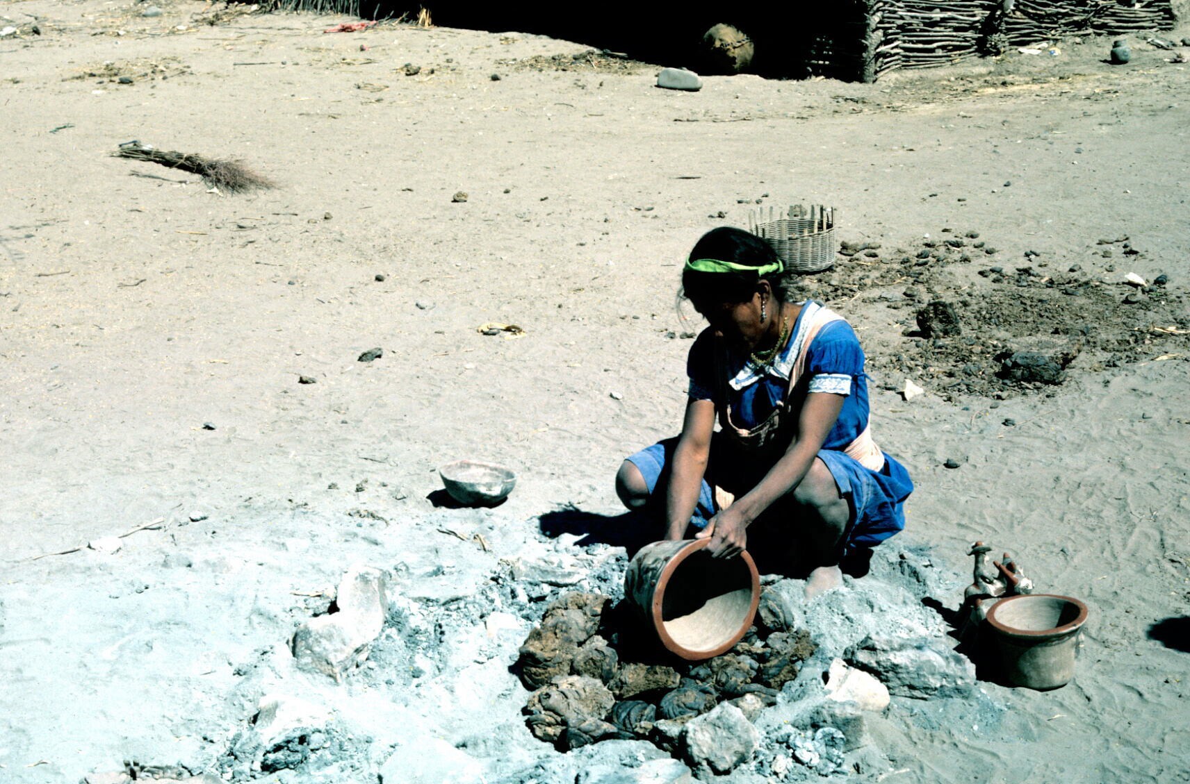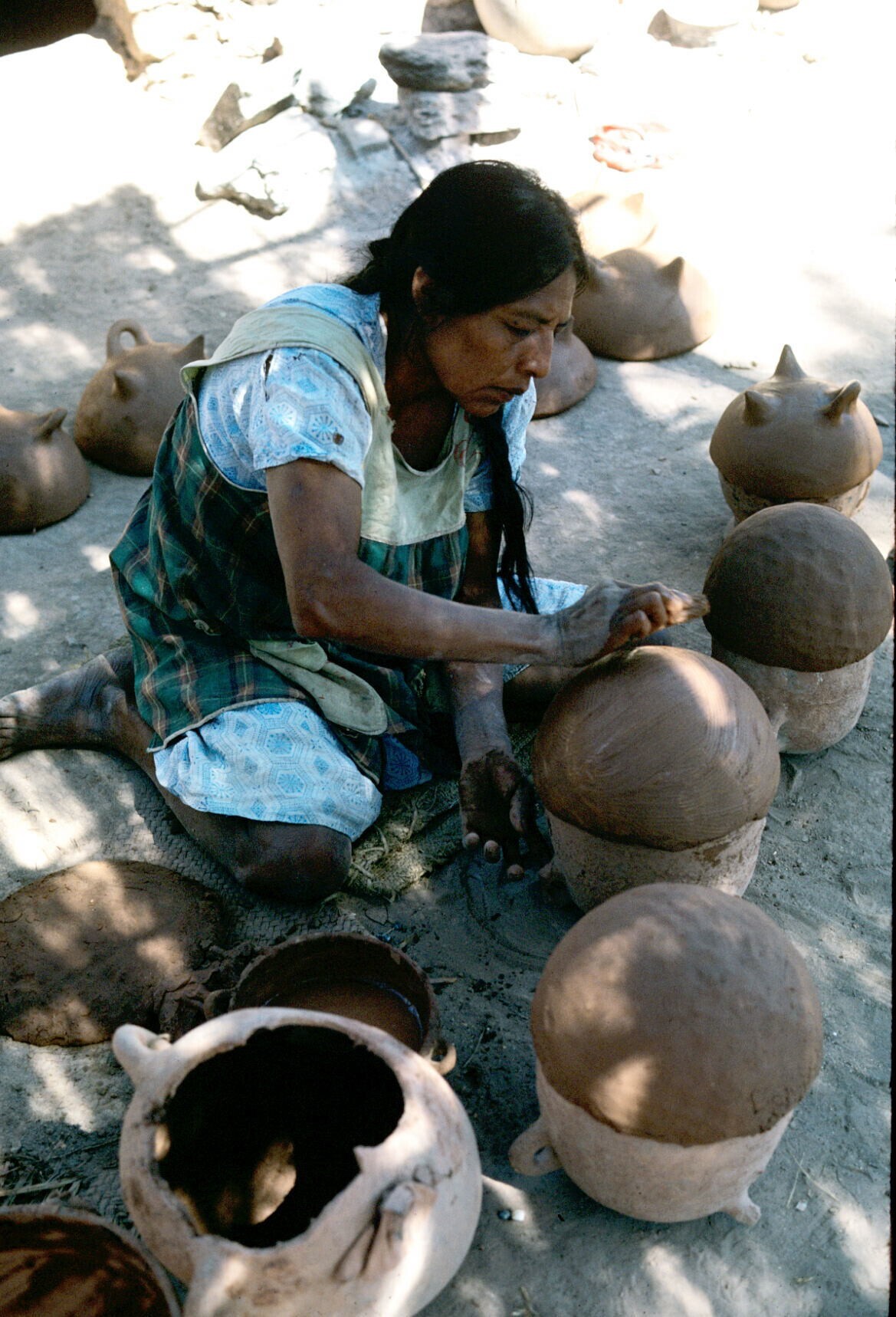 pottenbakster Margarita Gonzálezen familieleden op erf