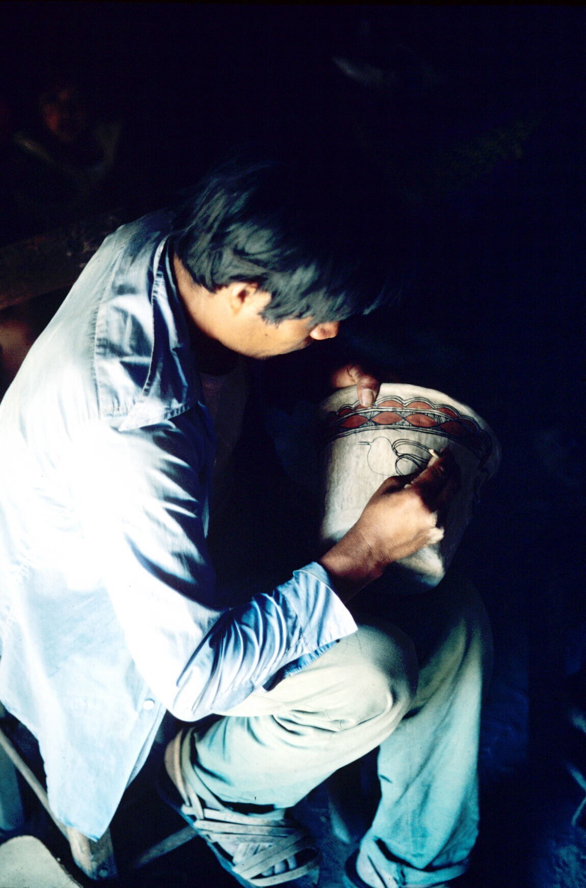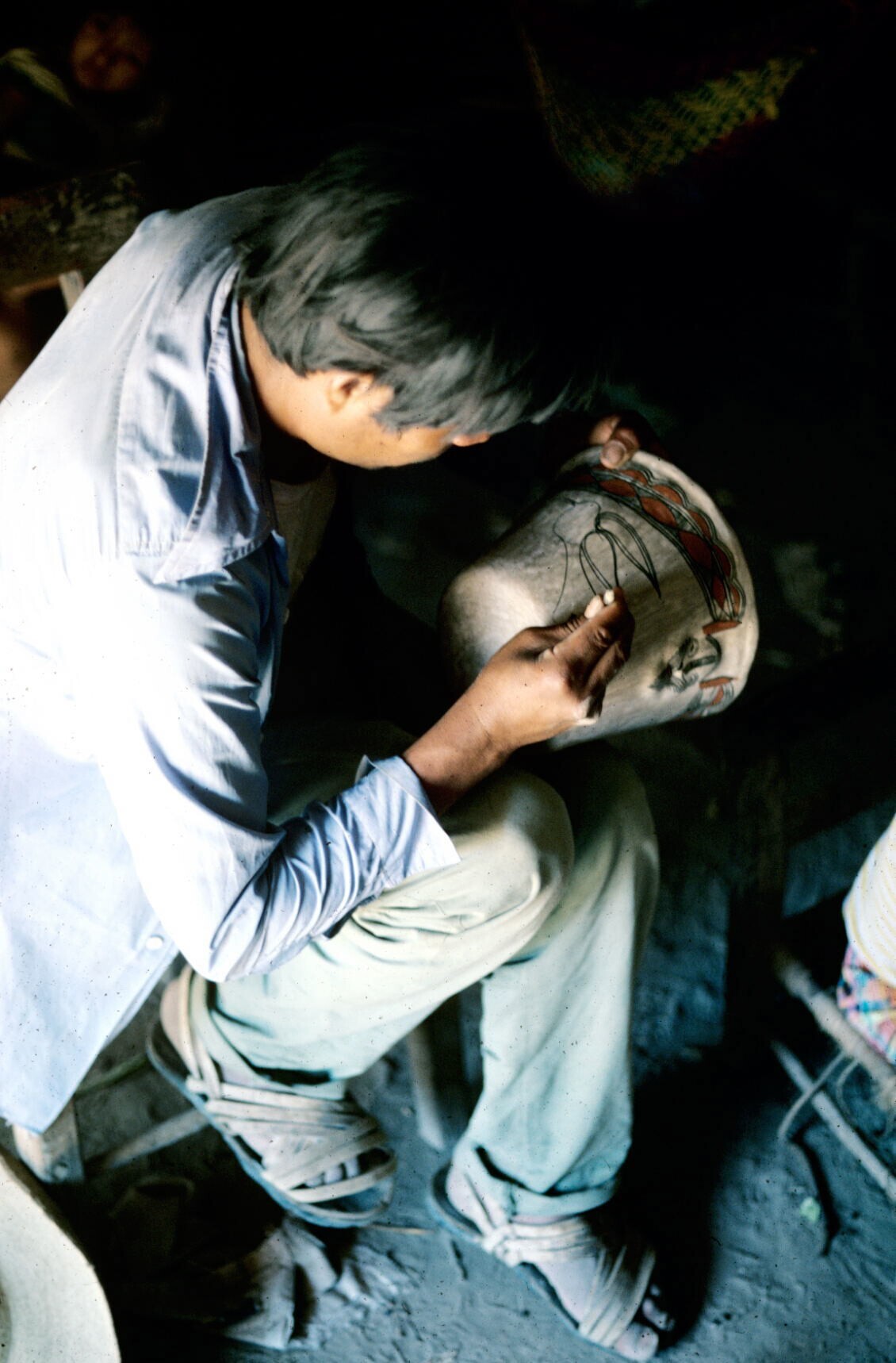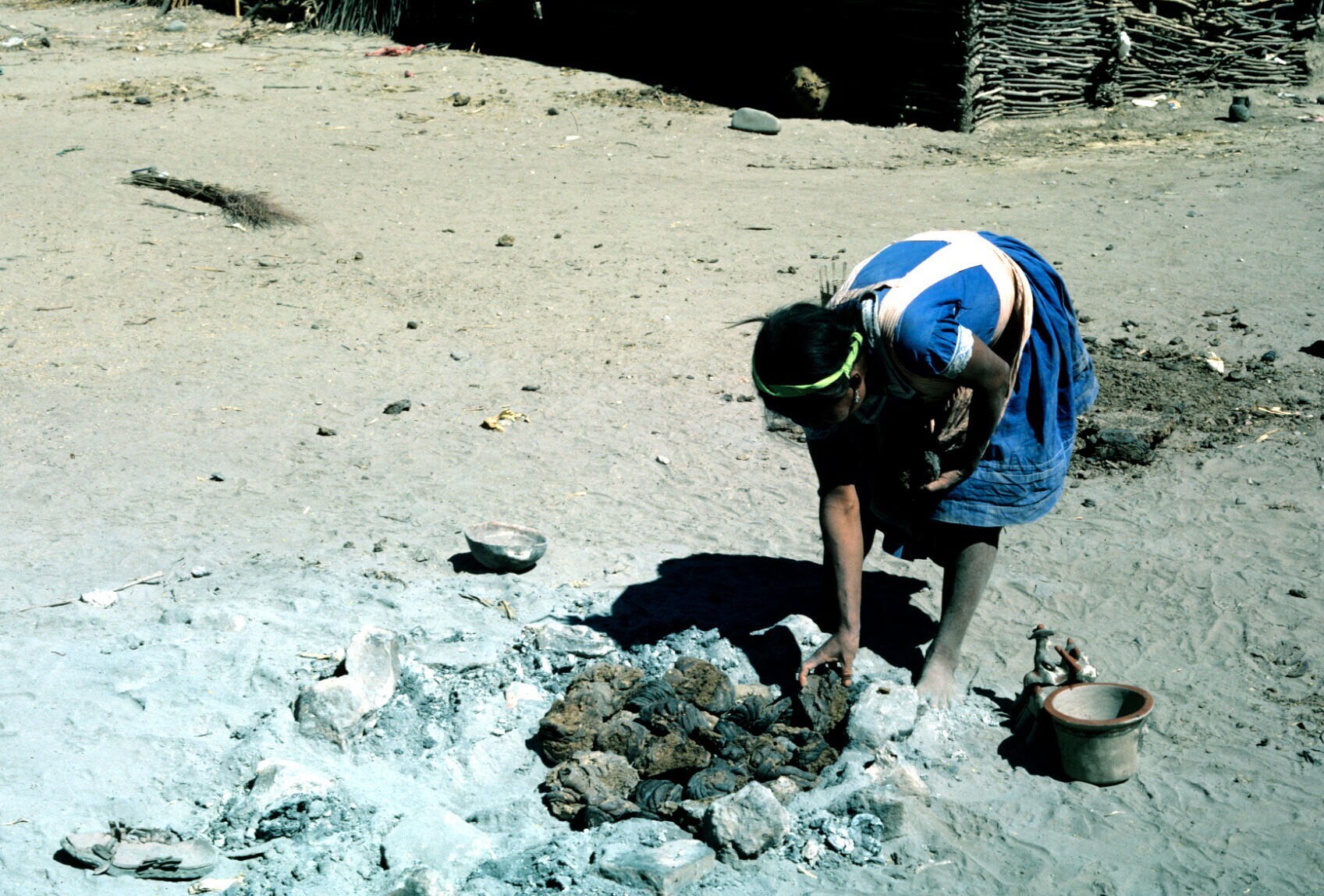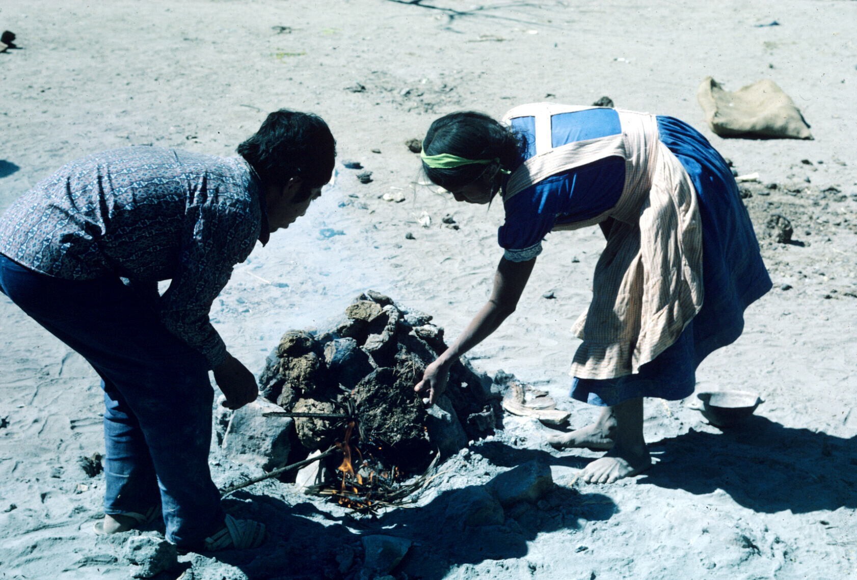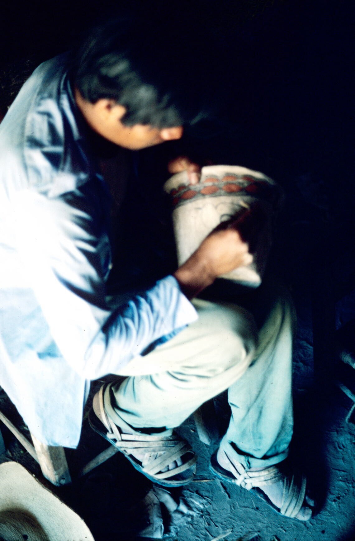 pottenbakster Margarita Gonzálezen familieleden op erf