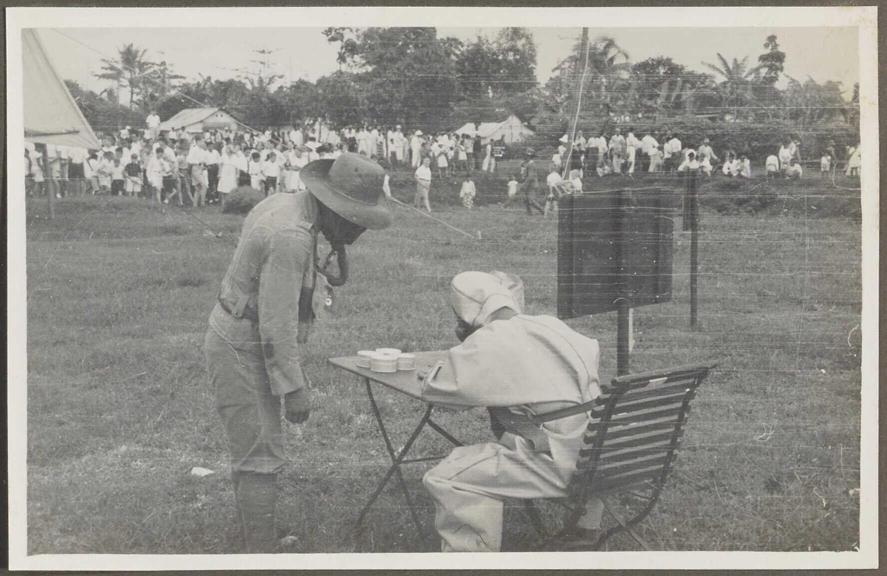 Verrekijker van het KNIL tussen het publiek op de Or...