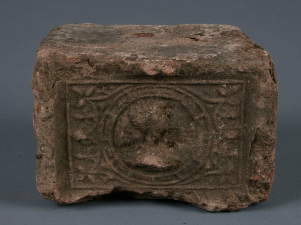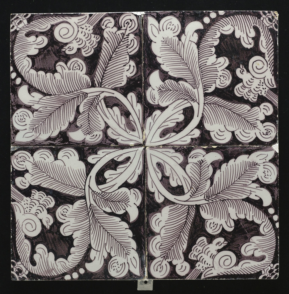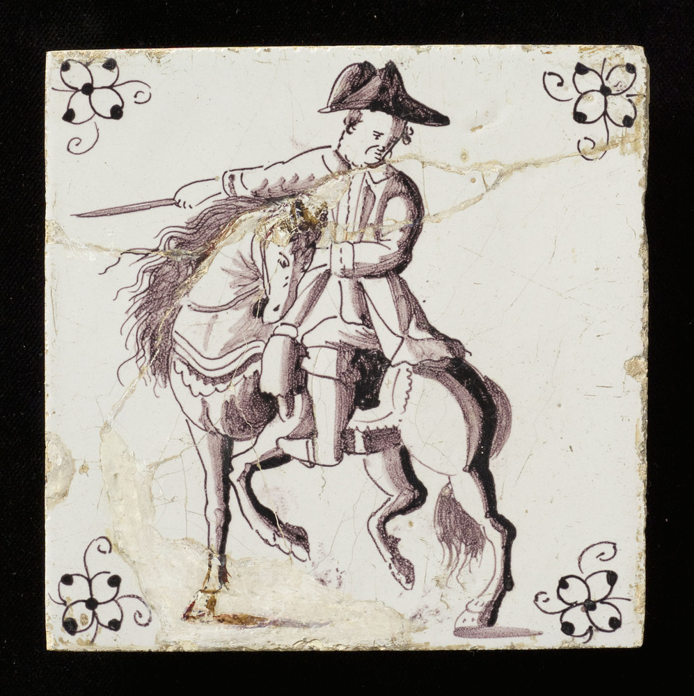 tegel van keramiek met tinglazuur, voorstellende: ru...